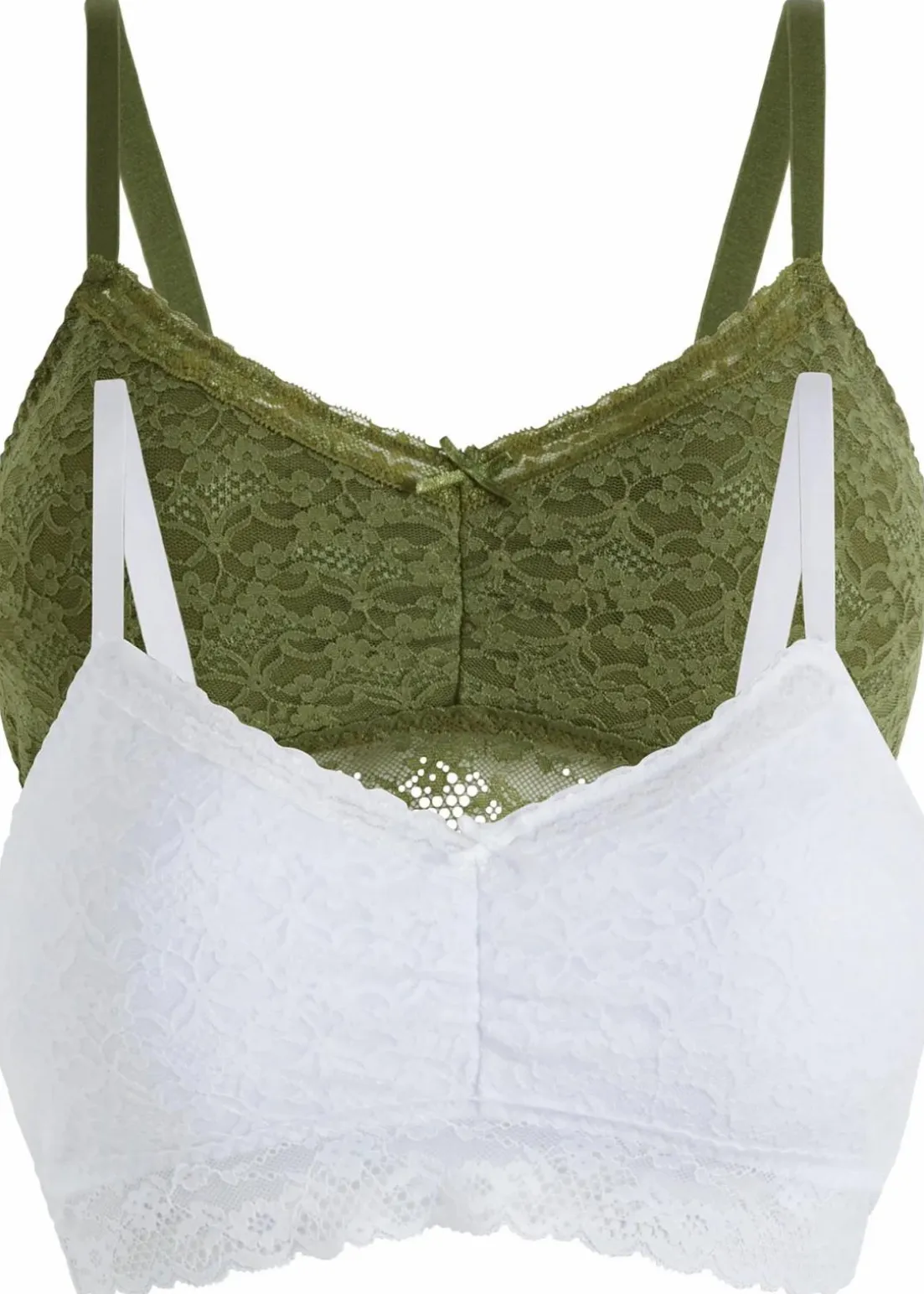 Dieser praktische Doppelpack hält tolle Bustiers der Marke RAINBOW für dich bereit.Das Bustier mit schmalen Trägern ist komplett aus verführerischer Spitze gearbeitet. Die Cups sind leicht vorgeformt und sorgen für ein schönes Dekolleté. Vorne mittig ist eine kleine Satinschleife angesetzt. Die Raffung an den Cups verleiht dem Bustier eine verspielte Note. Nur bis Cup-C geeignet.