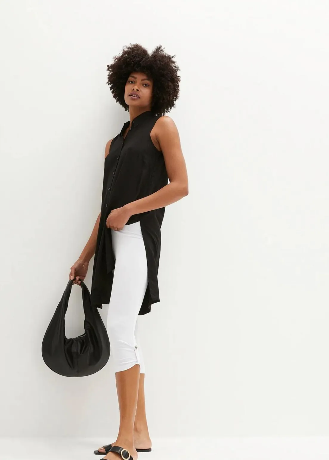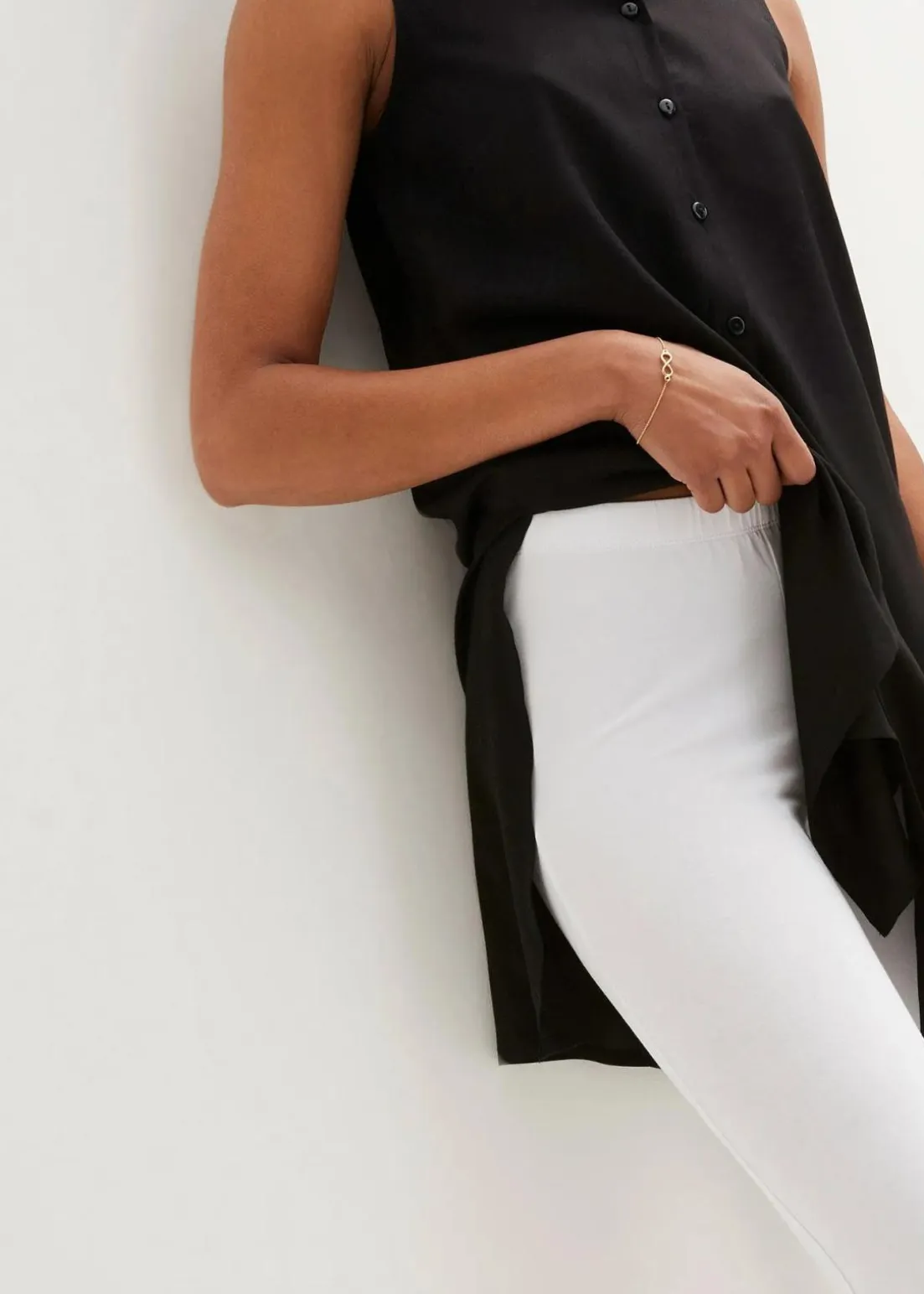 Capri Leggings aus Baumwolle mit seitlichem Knopf-Detail