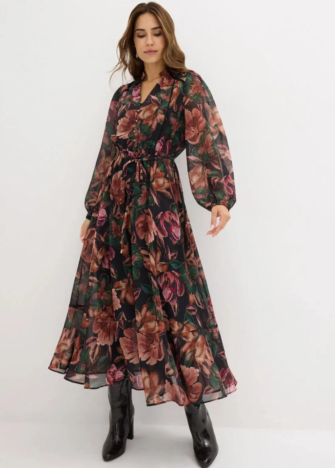 edles Chiffon Kleid im Blüten-Design