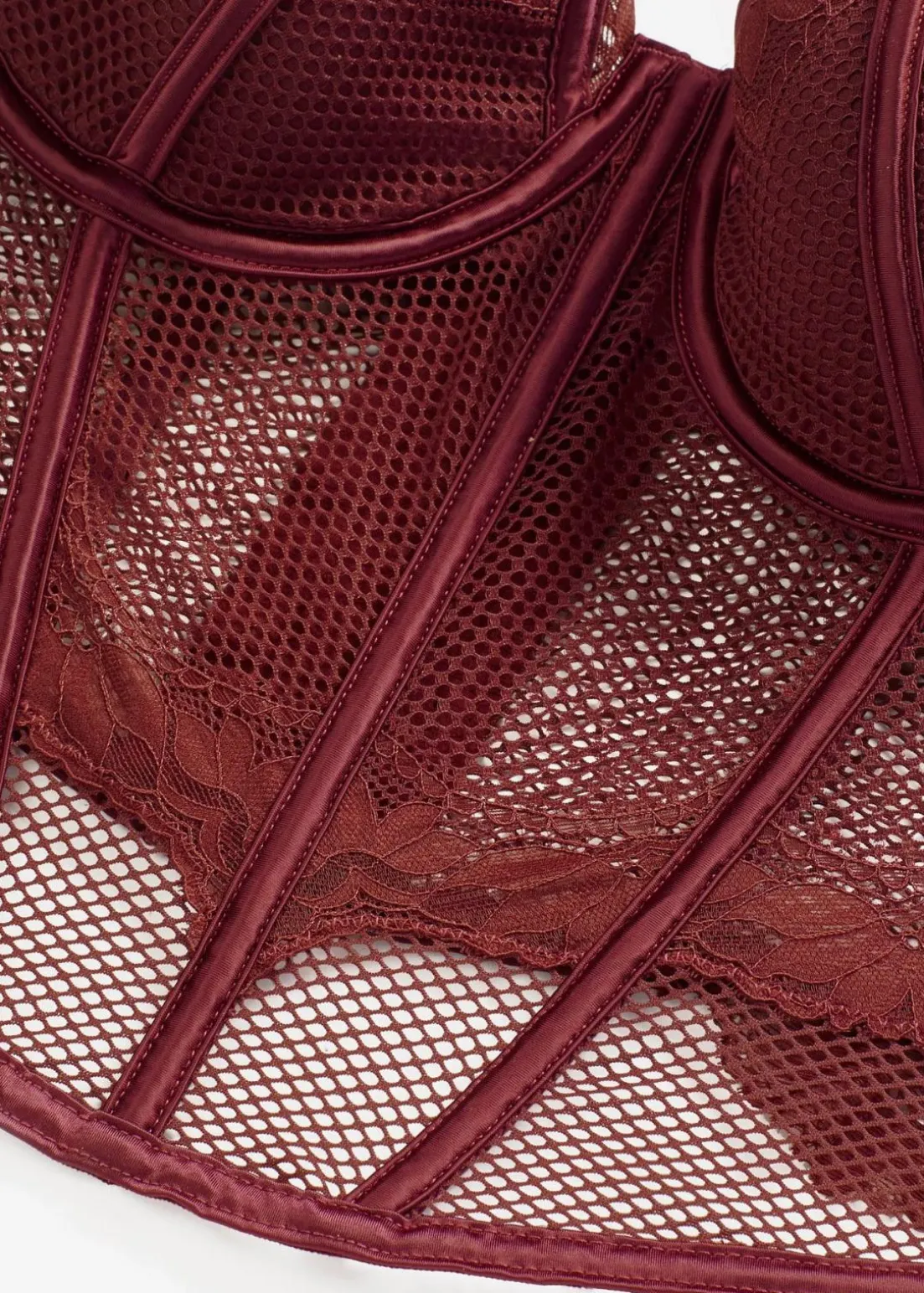 Corsage mit edler Spitze und Mesh-Einsätzen.