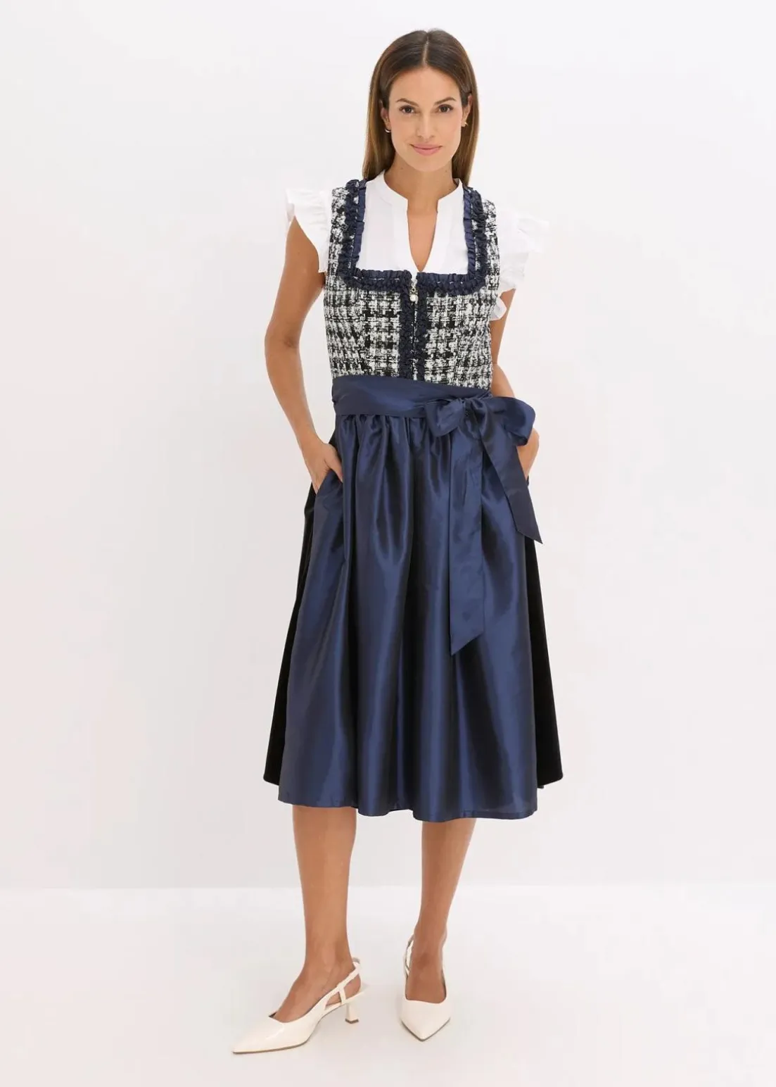 Modern und feminin: Dirndl mit einer Boucleé-Mieder und Schürze aus glänzendem Satin