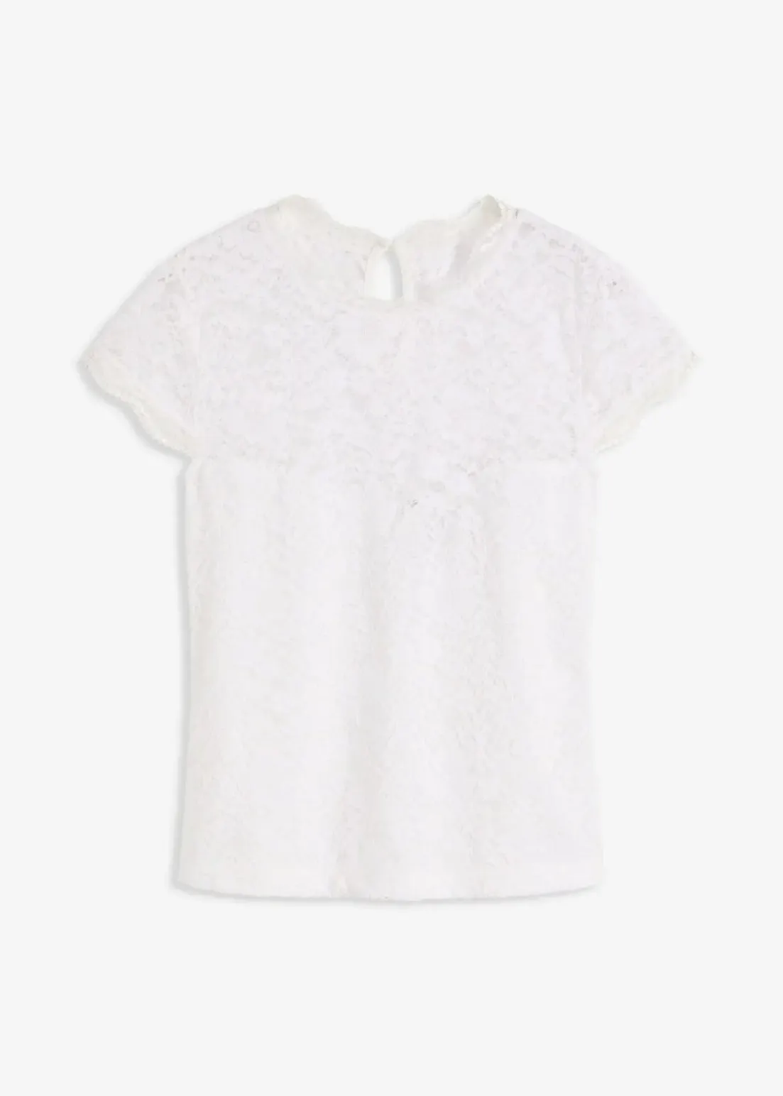 Romantisch und feminin: Dirndlbluse aus Spitze mit Mini-Ämrel und kleinem Stehkragen aus Spitze
