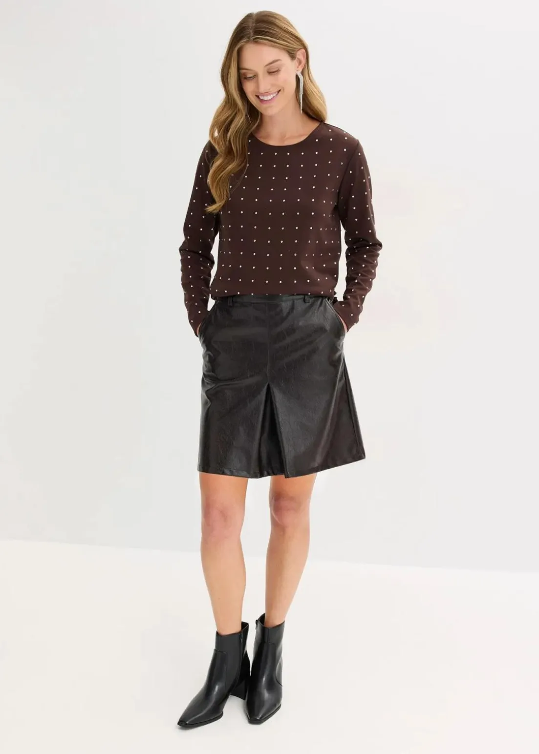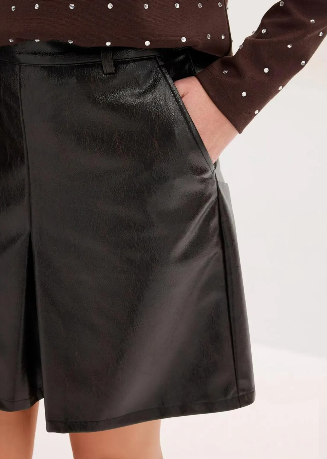 Minirock aus geprägtem Lacklederimitat mit Falte vorne