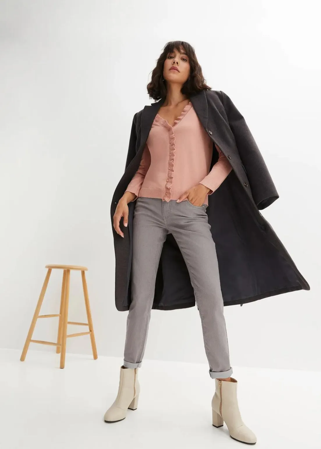 Kuschelige Strickjacke mit verspieltem Rüschenkragen
