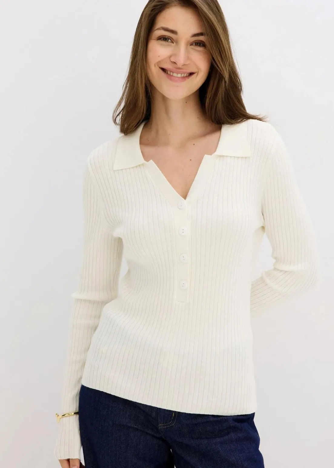 Moderner Pullover mit Knopfleiste