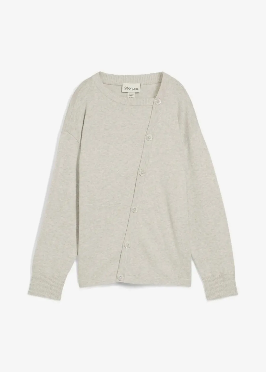 Langarm Strickpullover mit asymmetrischer Knopfleiste mit farblich passenden Knöpfen und gerippten Abschlüssen