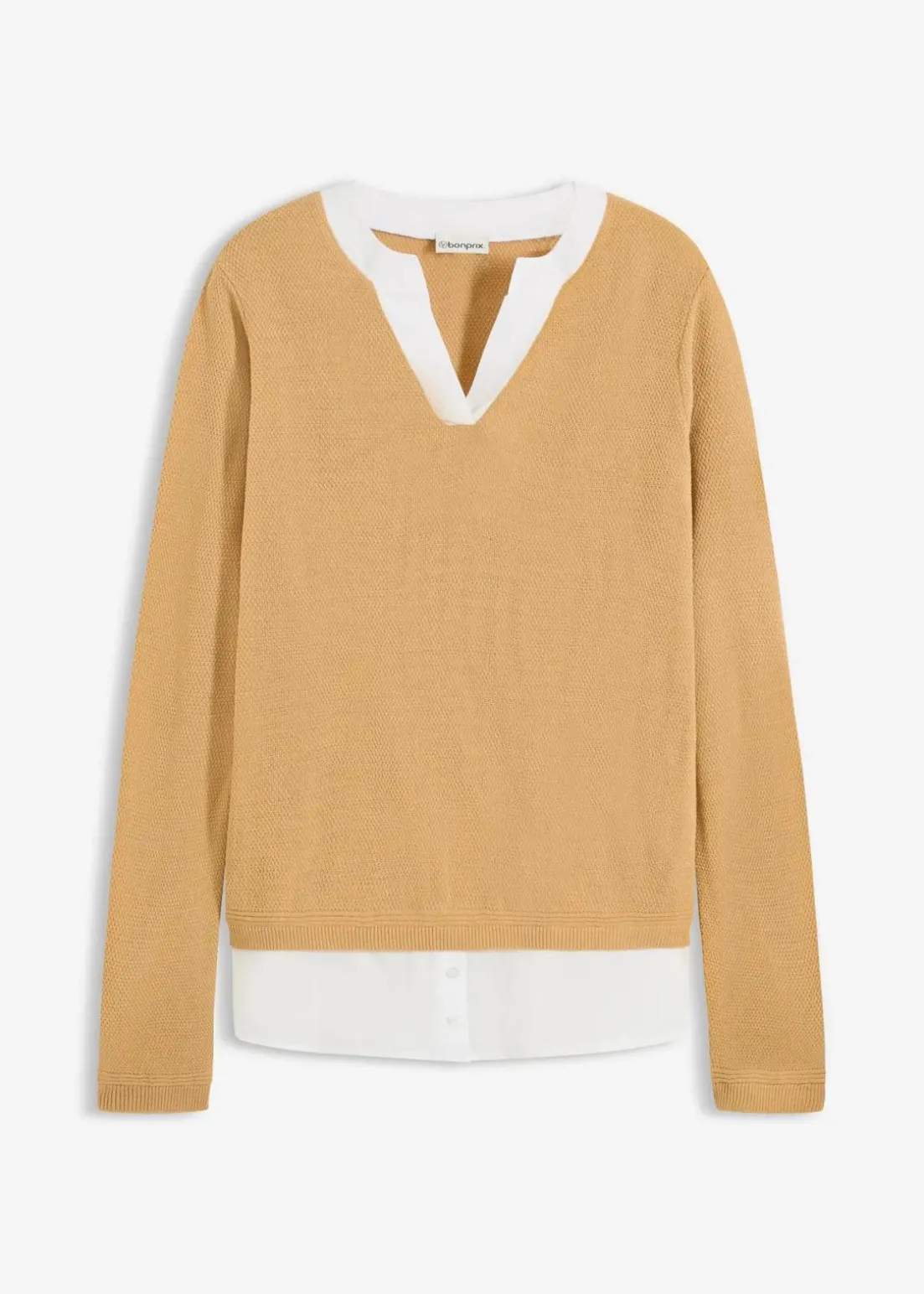Langärmliger Pullover mit Bluseneinsatz und interessanter Ausschnittgestaltung