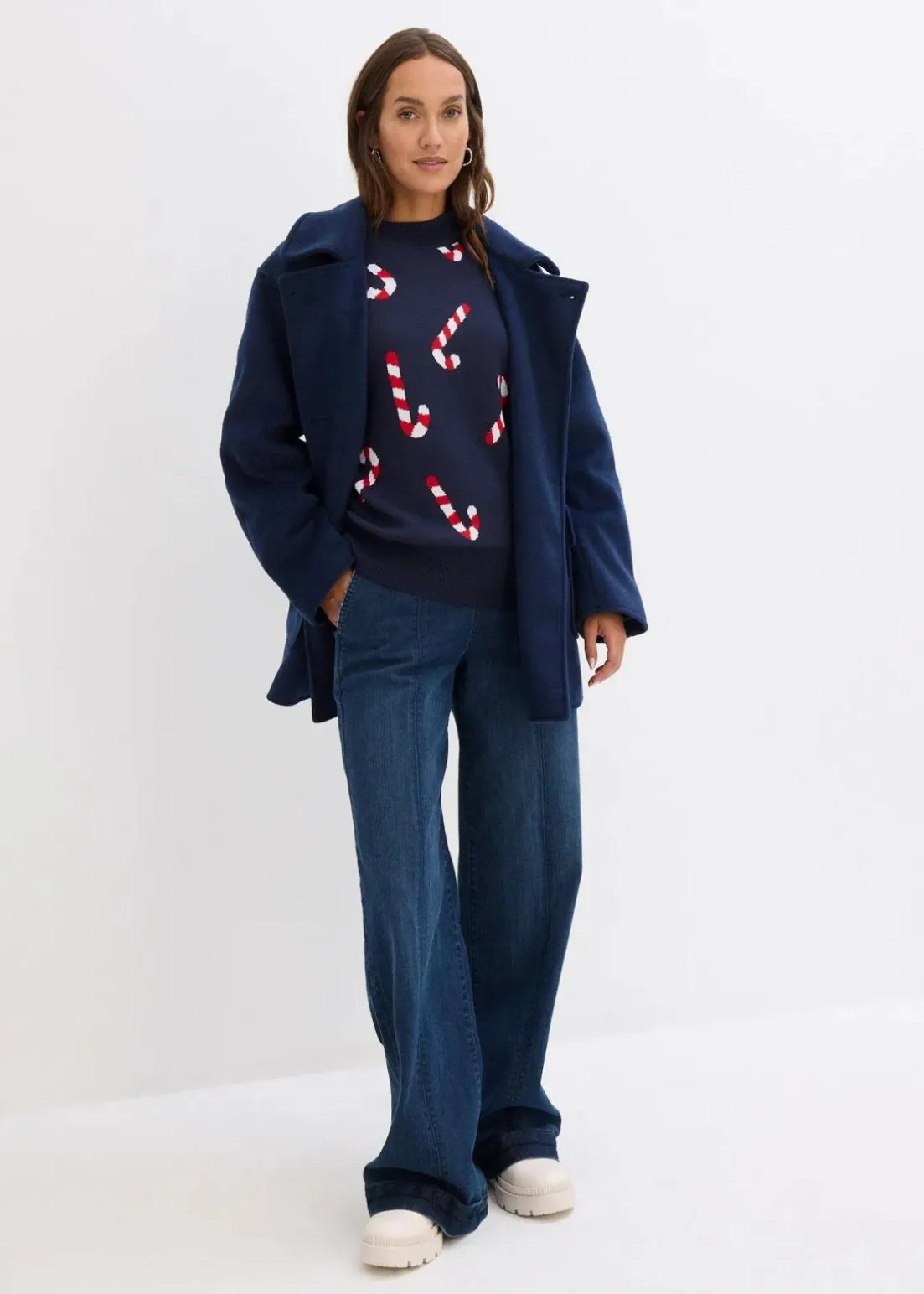 Weit geschnittener Rundhalspullover mit weihnachtlichem Motiv