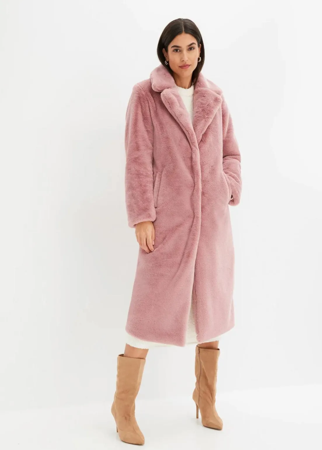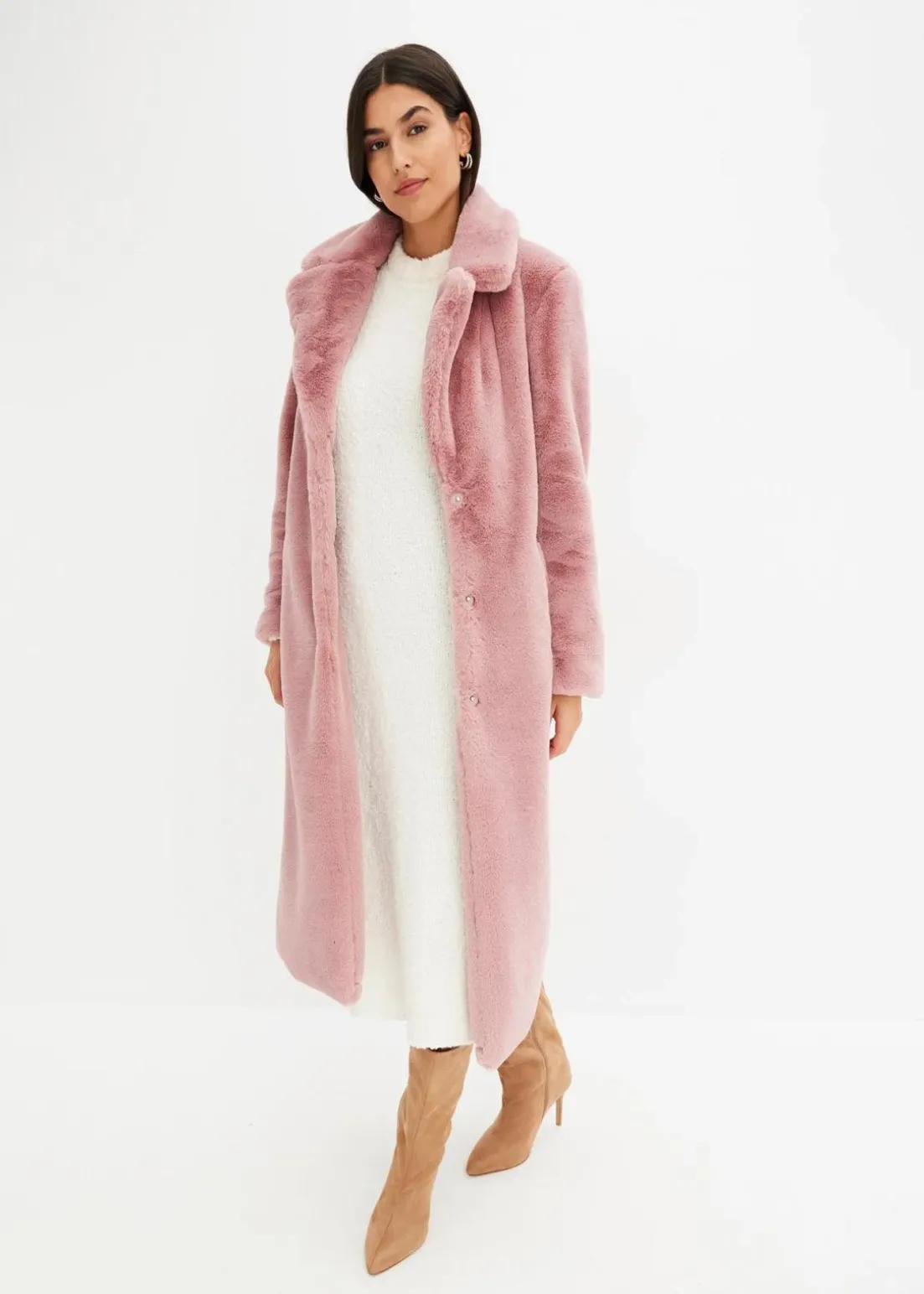modischer Fellimitatmantel mit Druckknopf-Verschluss vorne