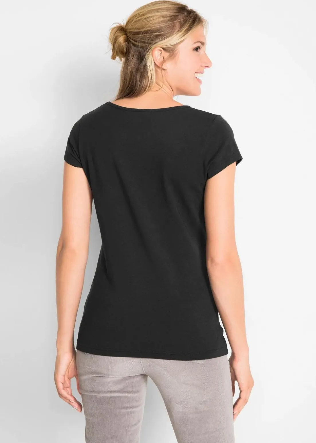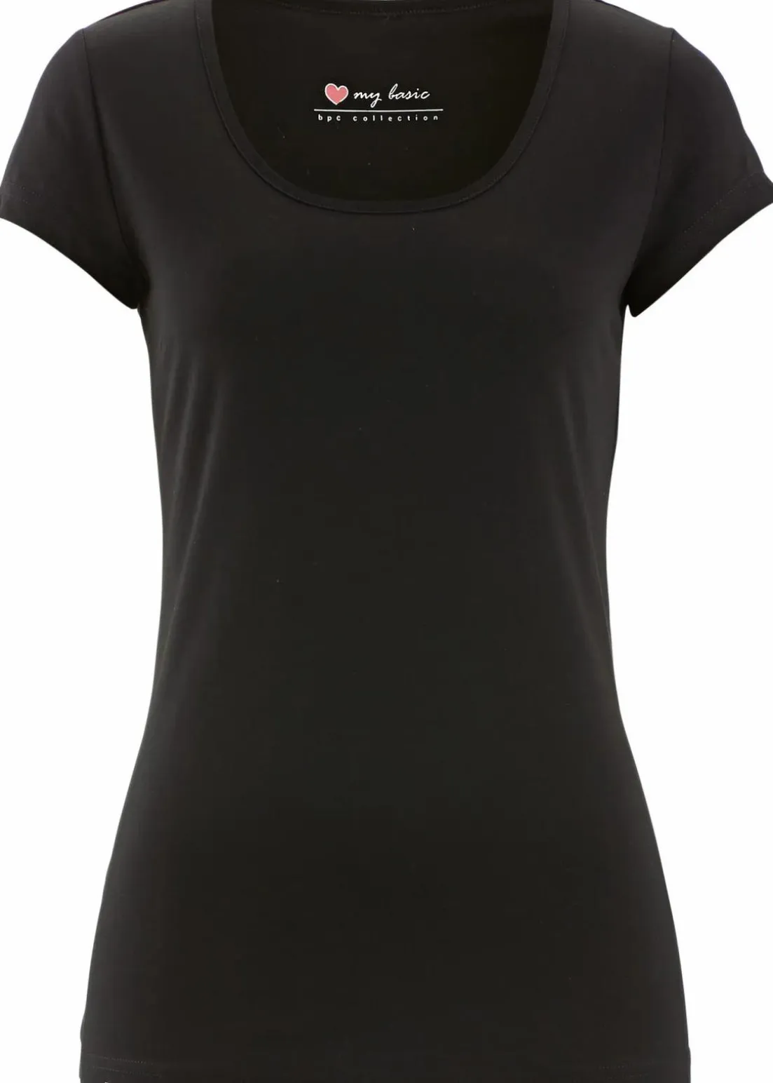 Dieses schlichte Stretch-Shirt mit Kurzarm aus der bpc Kollektion ist in einer breiten Farbpalette erhältlich. Ob in dezenten, frischen oder knalligen Farben: Das figurbetonte Shirt lässt sich toll zu Hosen und Röcken kombinieren. Unter Westen, Strickjacken und Blazer getragen, komplettiert es das alltagstaugliche Outfit.Der Stretchanteil verleiht dem Shirt seine gute Passform. Der klassische Rundhalsausschnitt lässt Platz für Accessoires wie modische Tücher und Ketten.