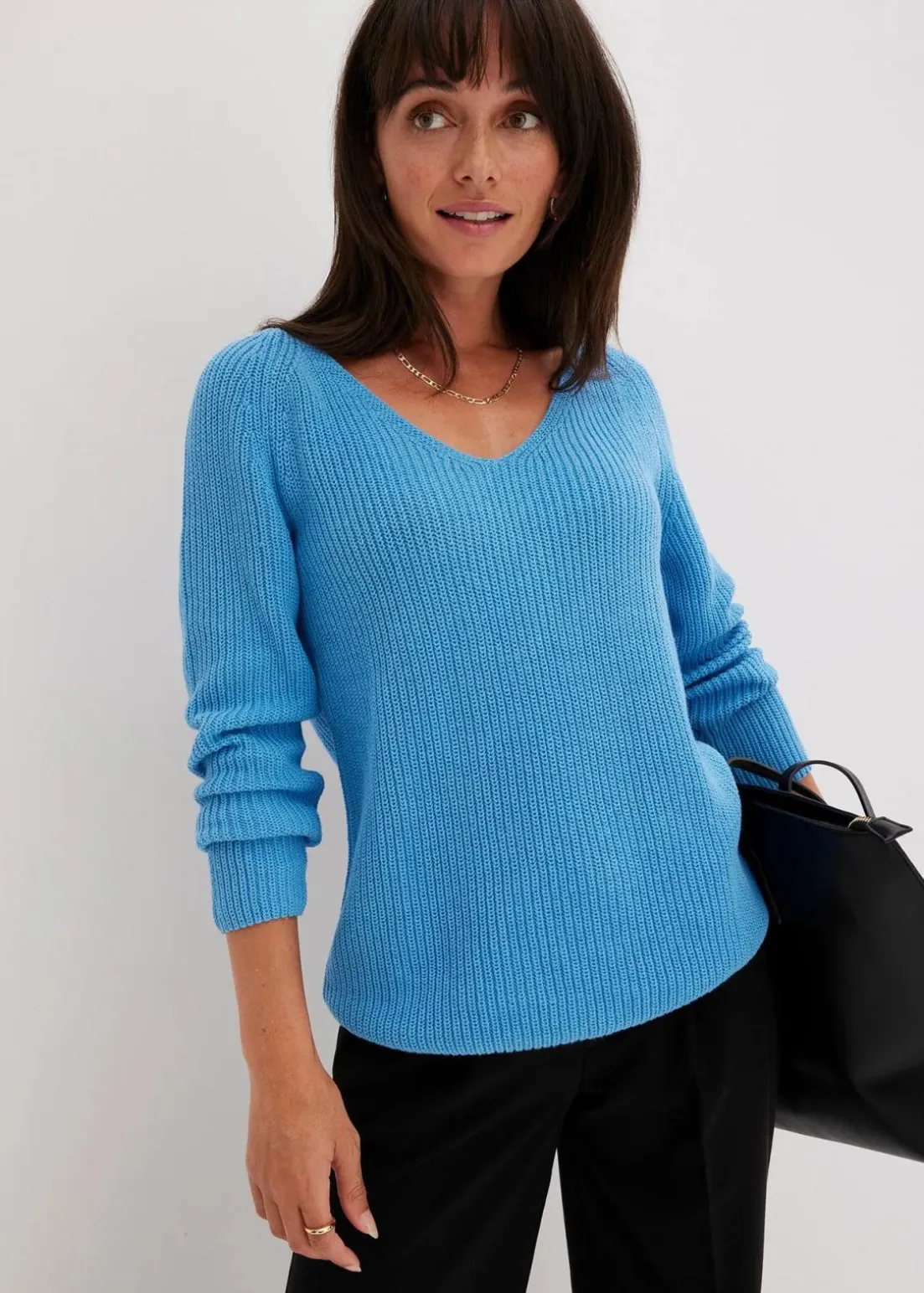 Ripp-Pullover mit V-Ausschnitt