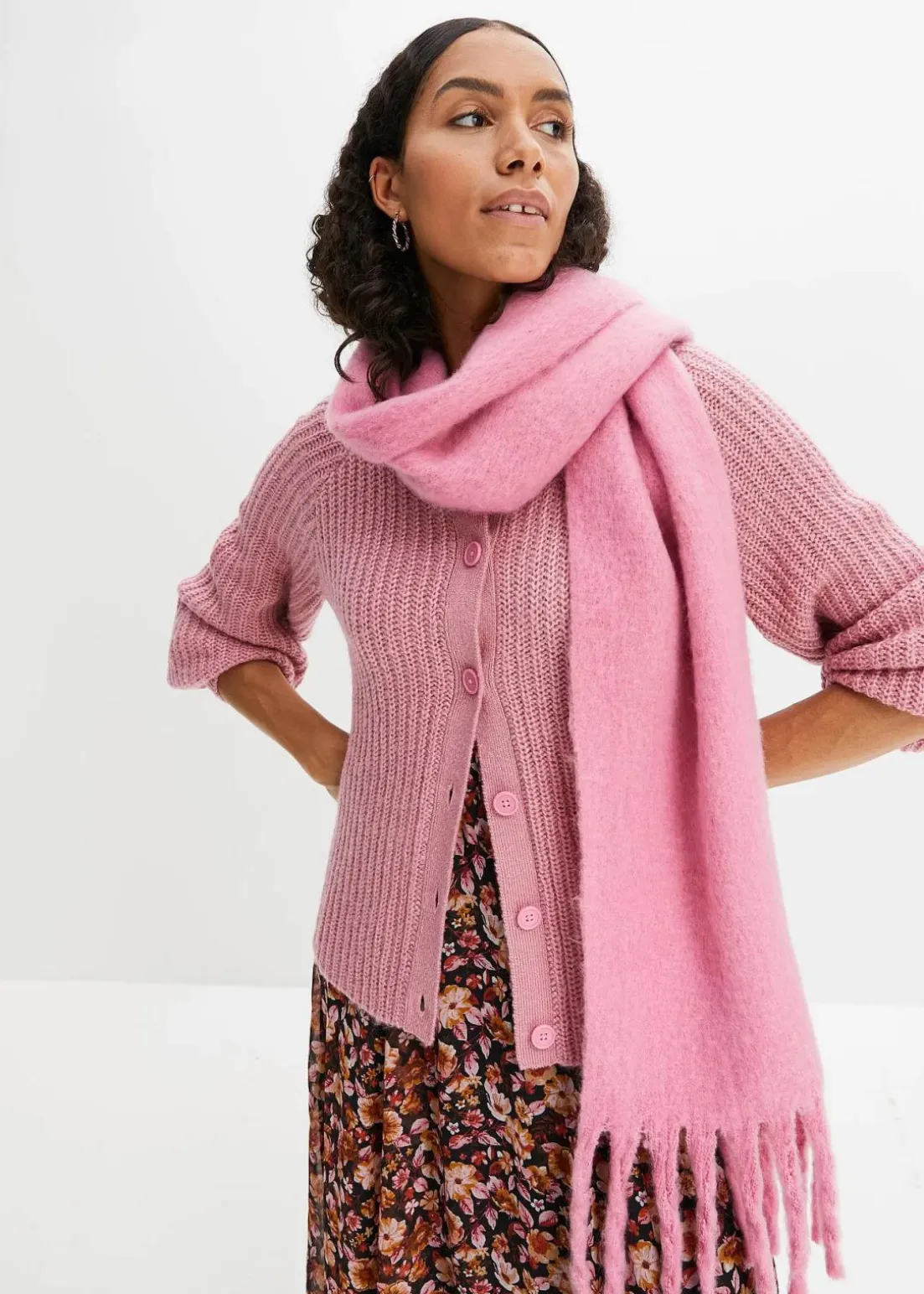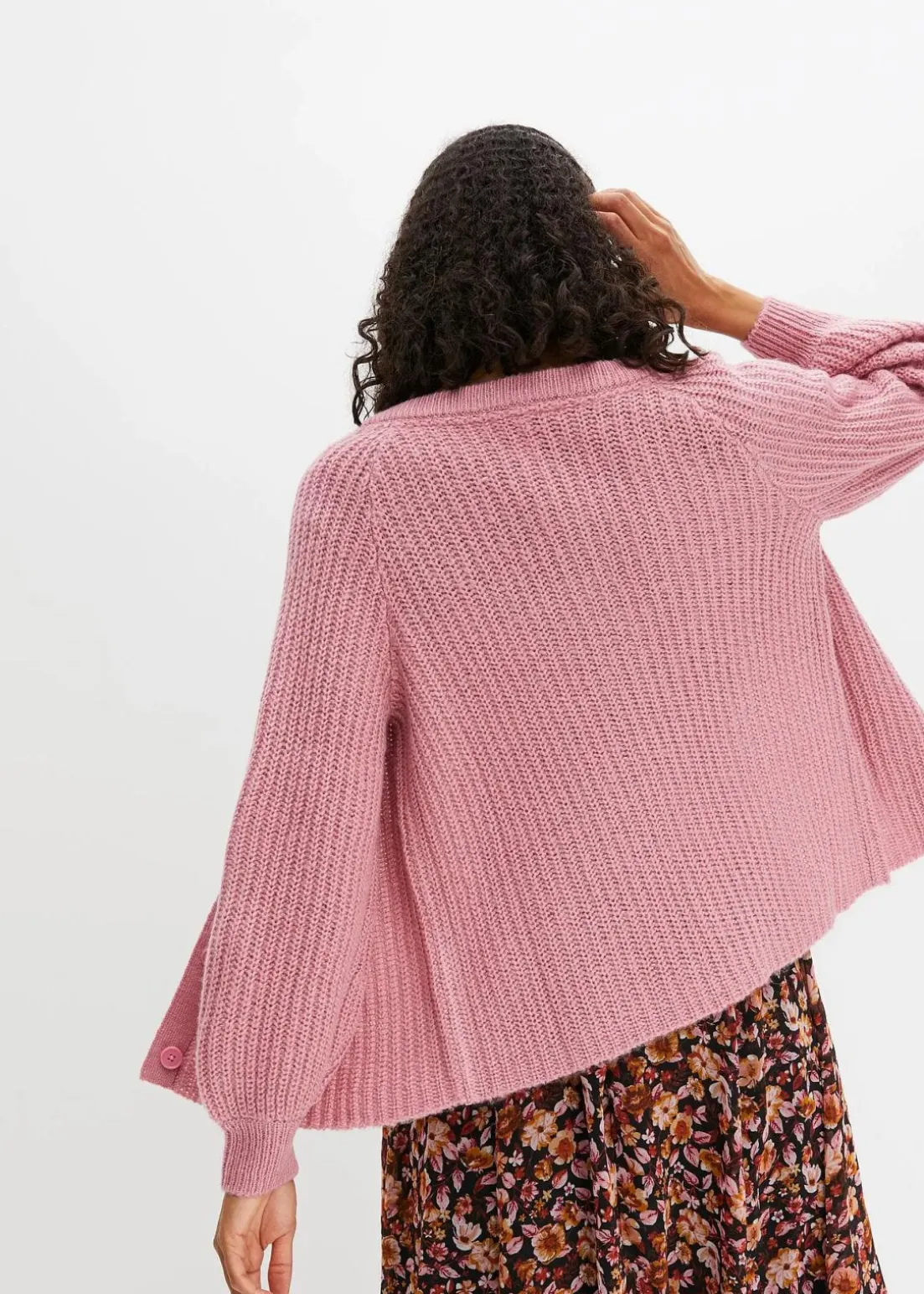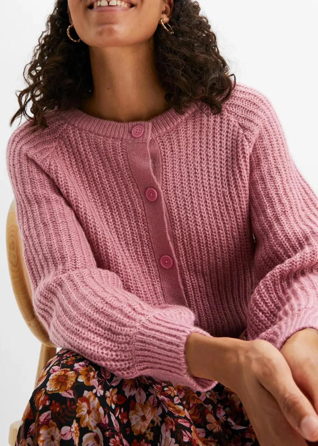 Modische Grobstrickjacke mit Rundhalsausschnitt