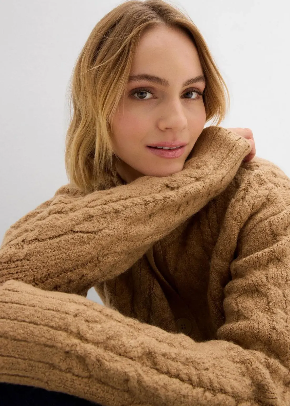 Grobstrickjacke mit Zopfmuster