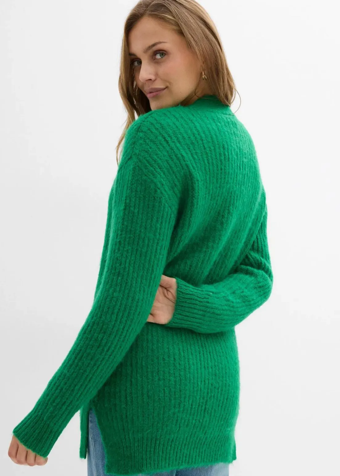 Locker geschnittene Strickjacke mit Wollanteil