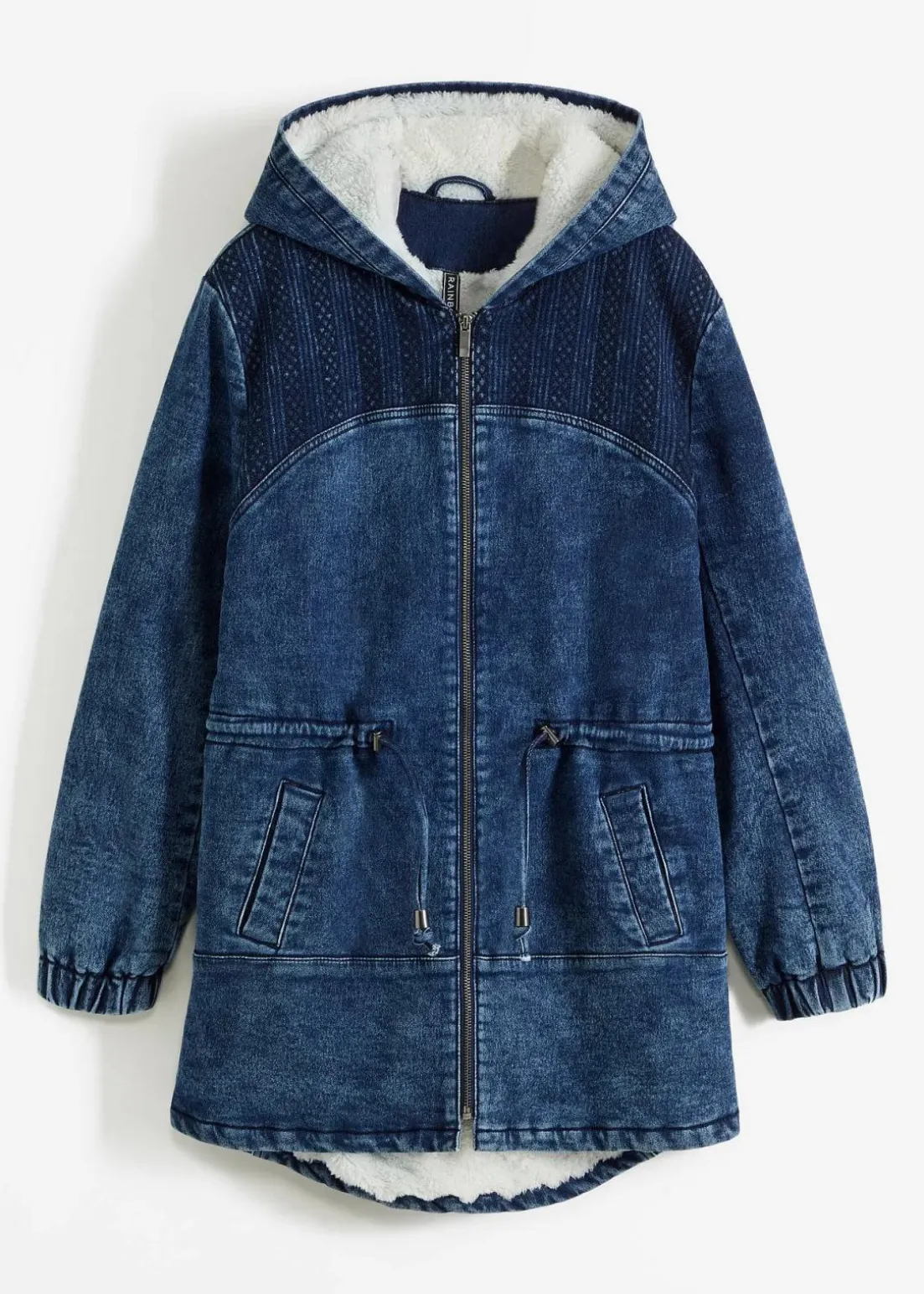 Lässiger Jeans-Parka mit flauschigem Teddyfell gefüttert