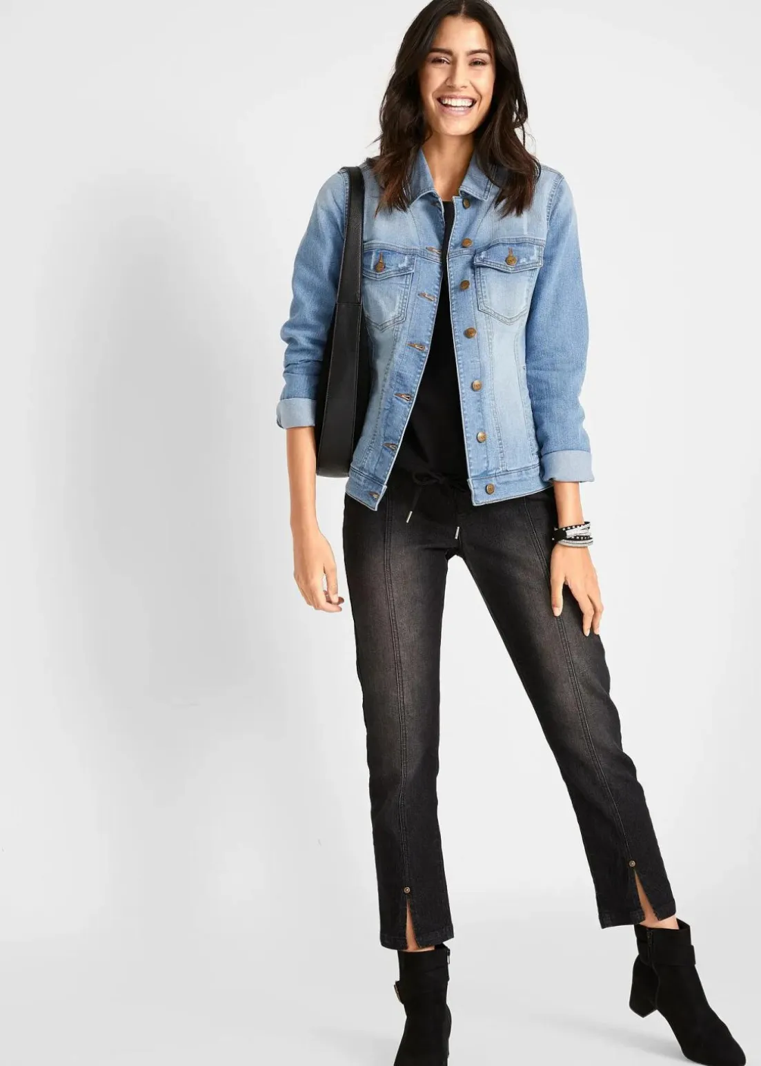 Vielseitig kombinierbare Jeansjacke mit seitlichem Rippeinsatz