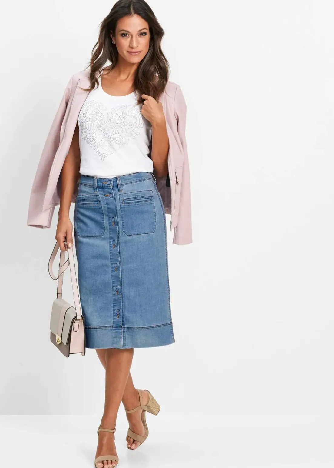 Charmanter Jeansrock mit Knöpfen und aufgesetzten Taschen
