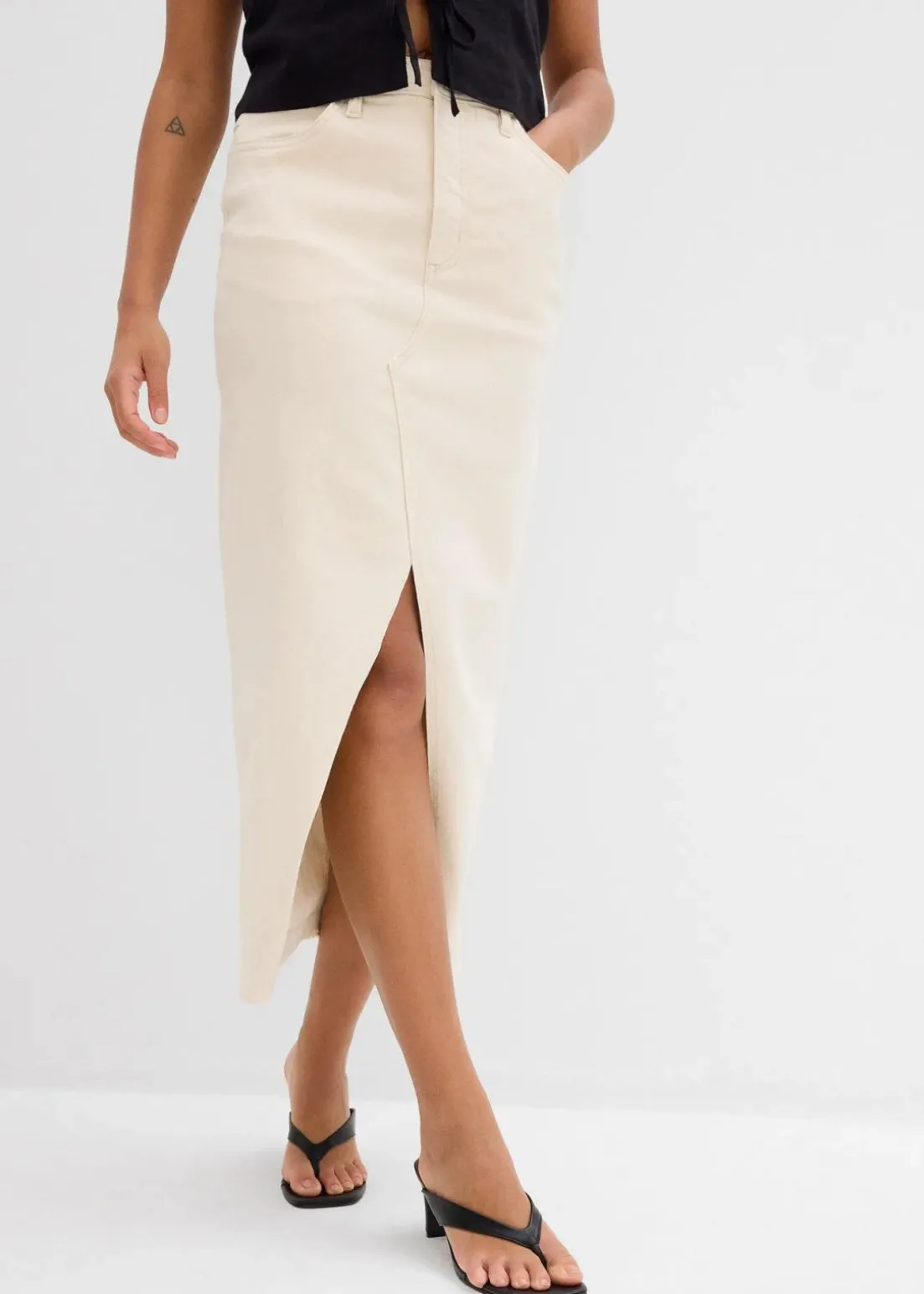 Sommerlicher Jeansrock mit Schlitz und offenem Saum