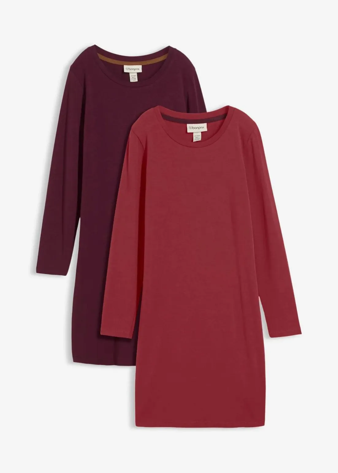 Basic Stretch-Kleid mit Rundhals-Ausschnitt, langarm, Doppelpack