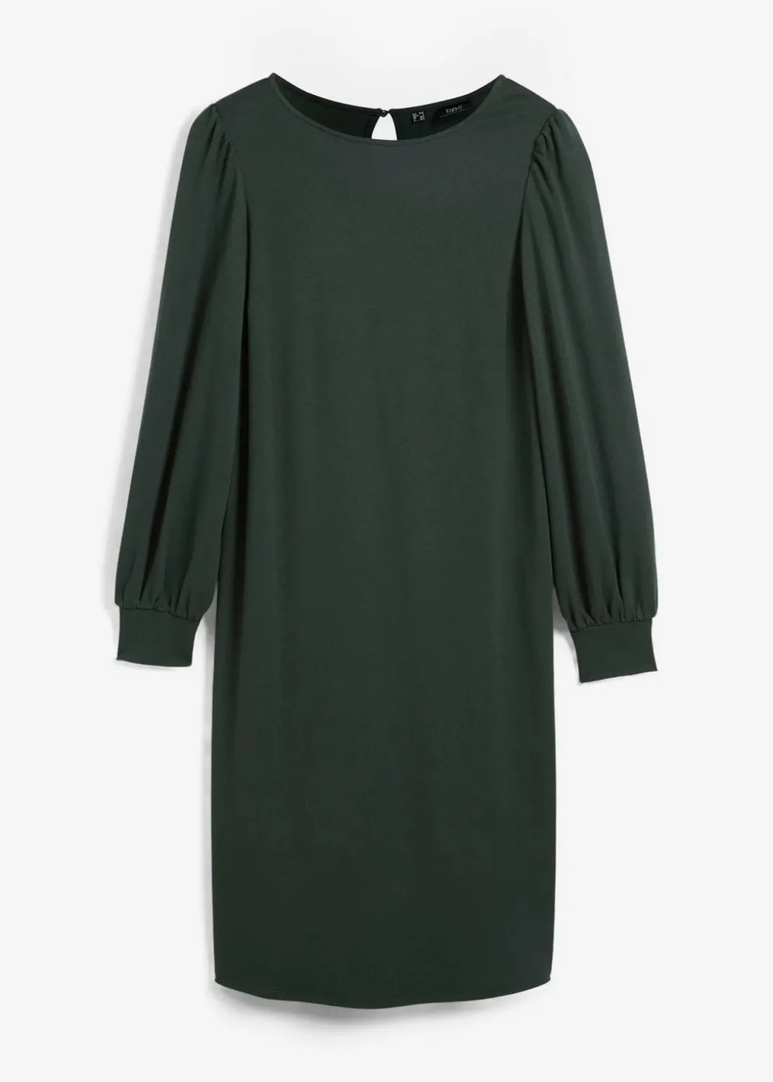 figurumspielendes Kleid aus fester Jersey-Qualität, die Ärmelbündchen sind mit edlen, stoffüberzogenen Knöpfen zu schließen