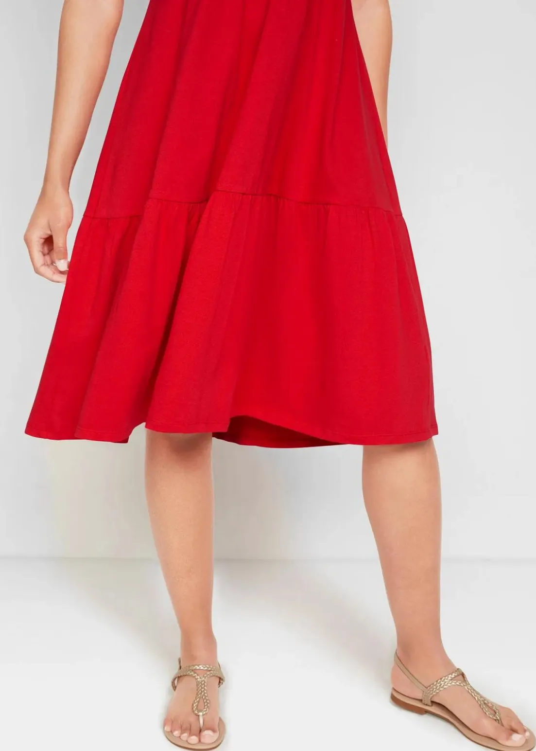 Schlichtes Bahnenkleid mit A-Förmigem Schnitt und V-Ausschnitt aus Baumwolle
