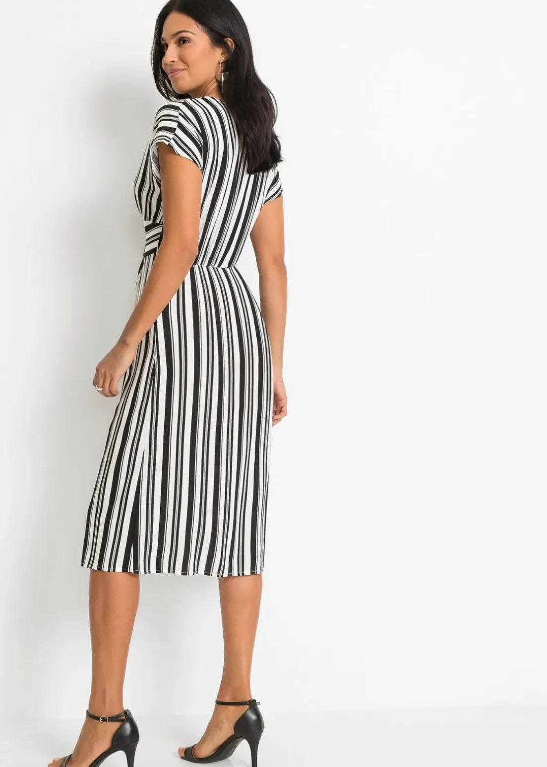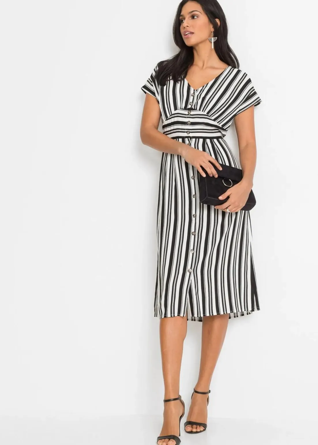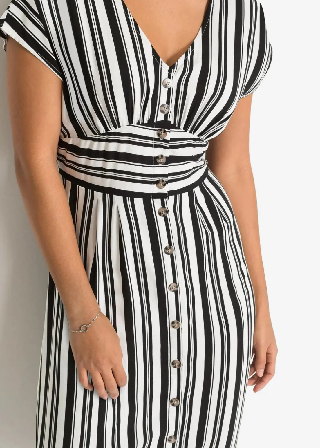 Modisches Kleid mit Streifendesign und durchzogener Knopfleiste.