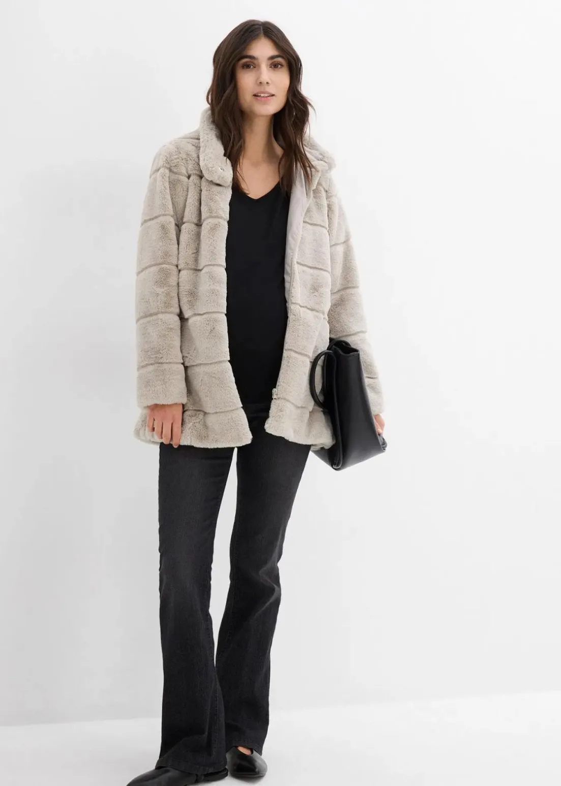 Flauschige Umstandsjacke mit seitlichen Reißverschlüssen