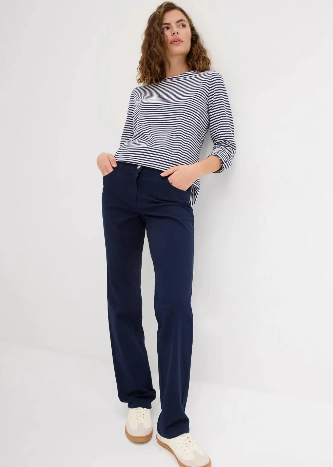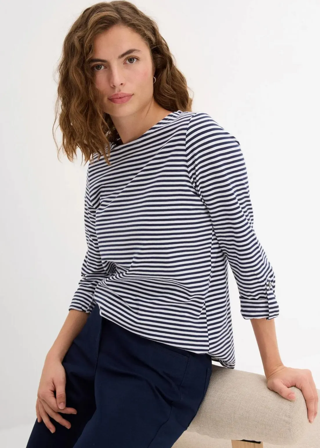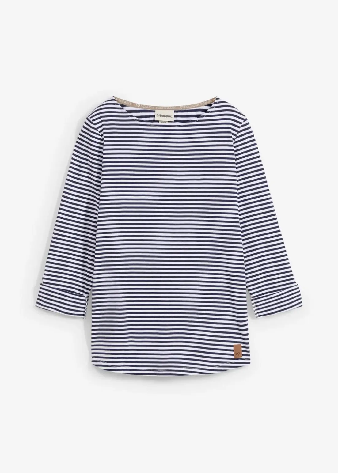 Bequemes Baumwollshirt mit U-Boot Ausschnitt, langärmelig