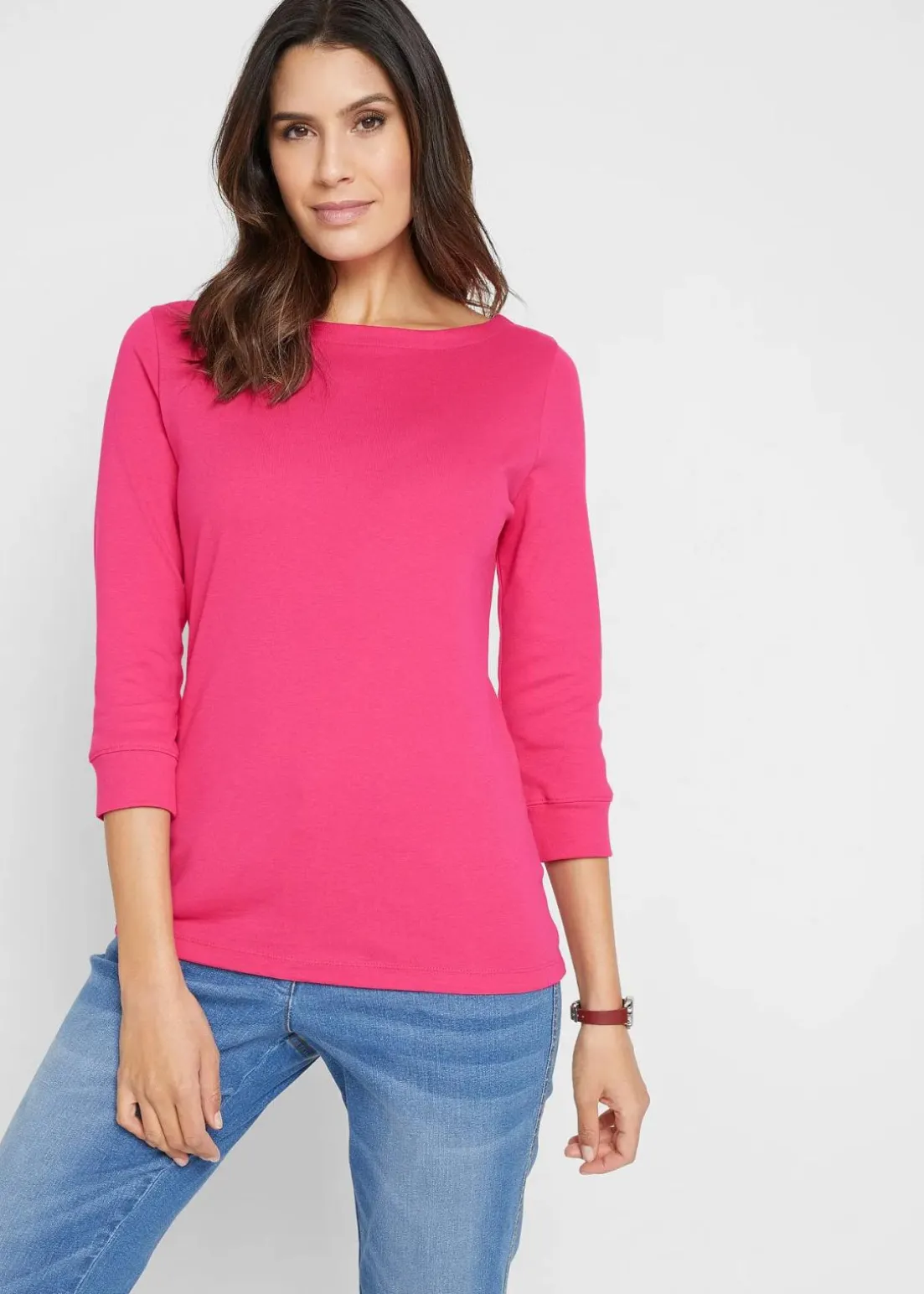 Bequemes Stretch-Shirt mit 3/4 Ärmeln und U-Boot Ausschnitt