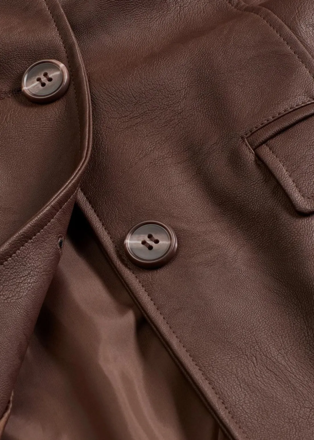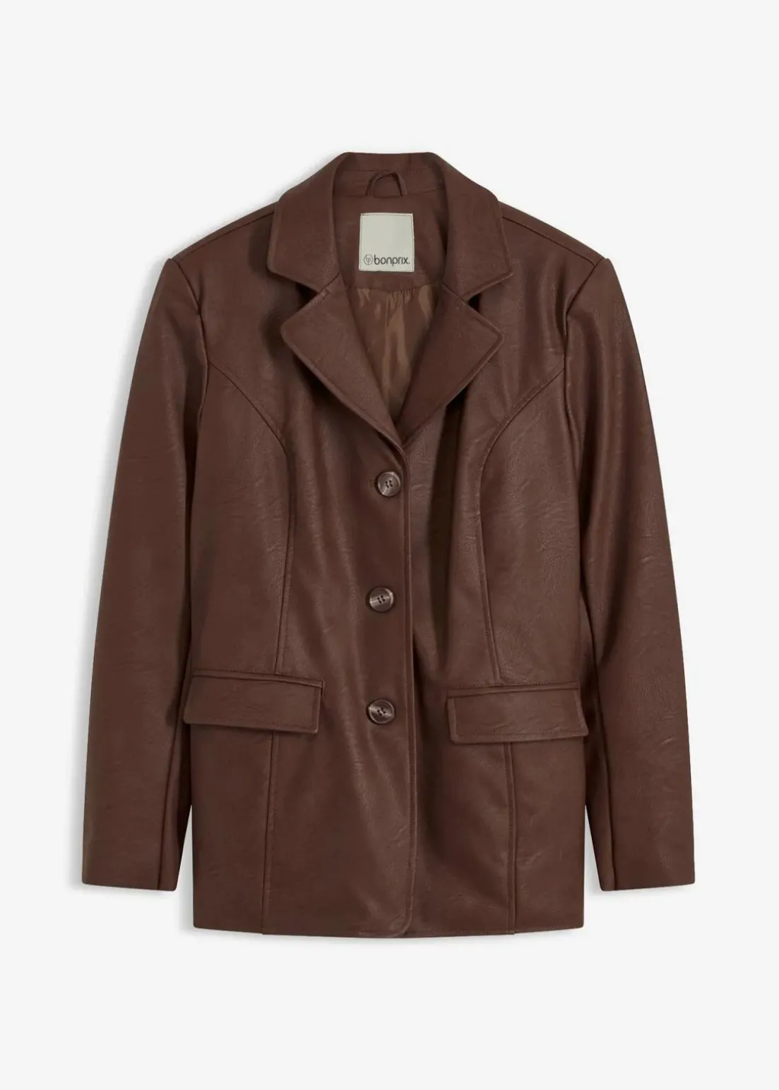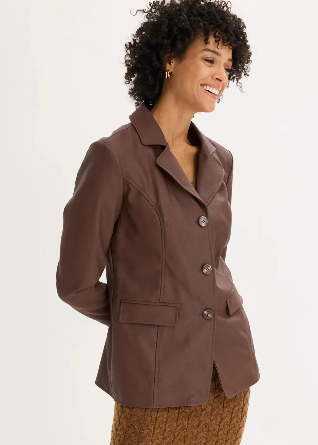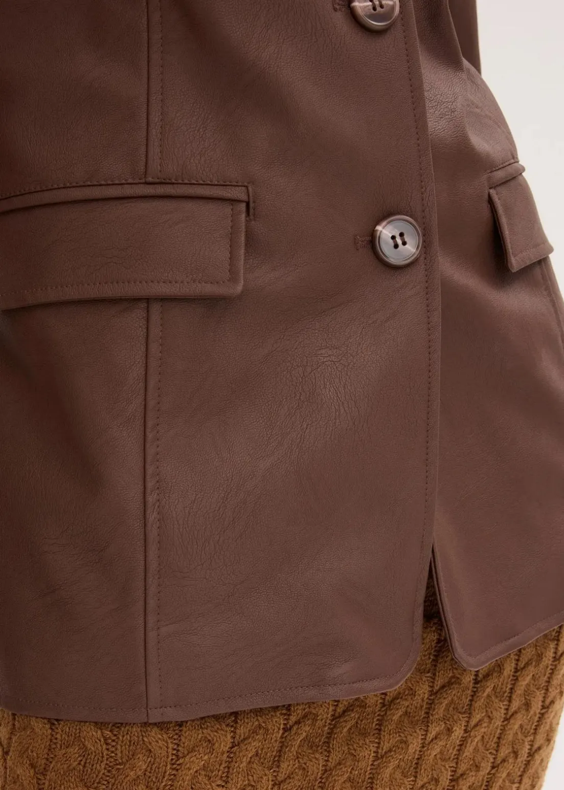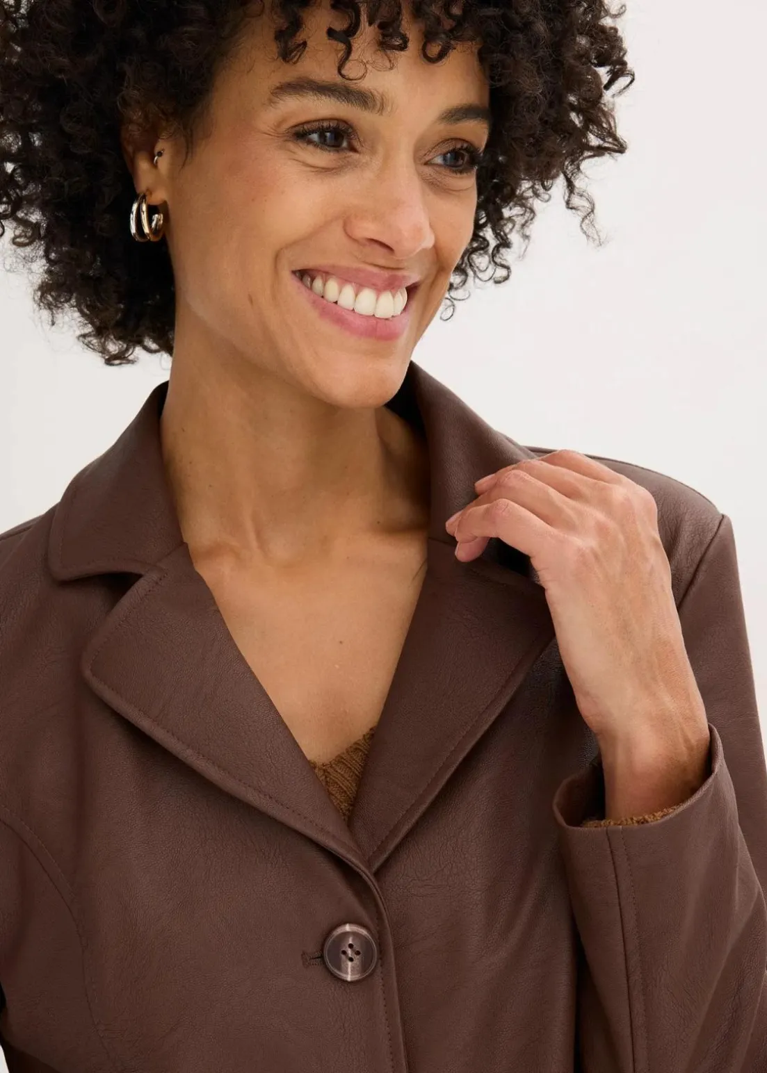 Wunderschöner Lederimitat-Longblazer mit leichter Taillierung