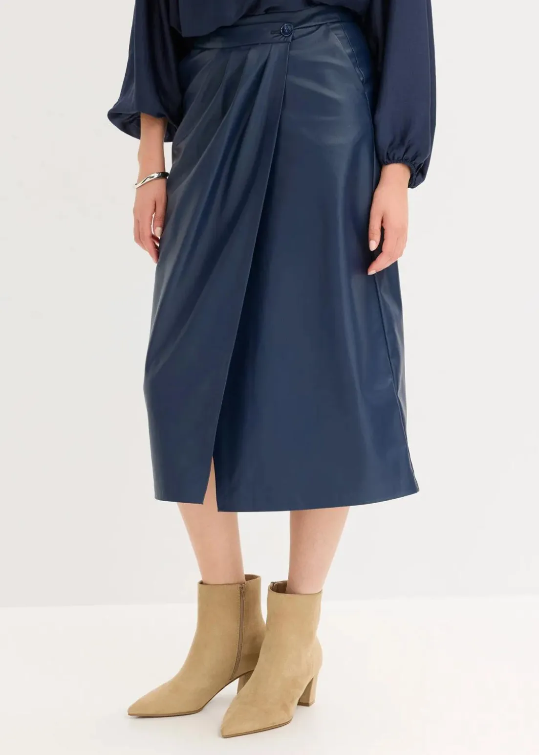 eleganter Lederimitat Midi-Wickelrock