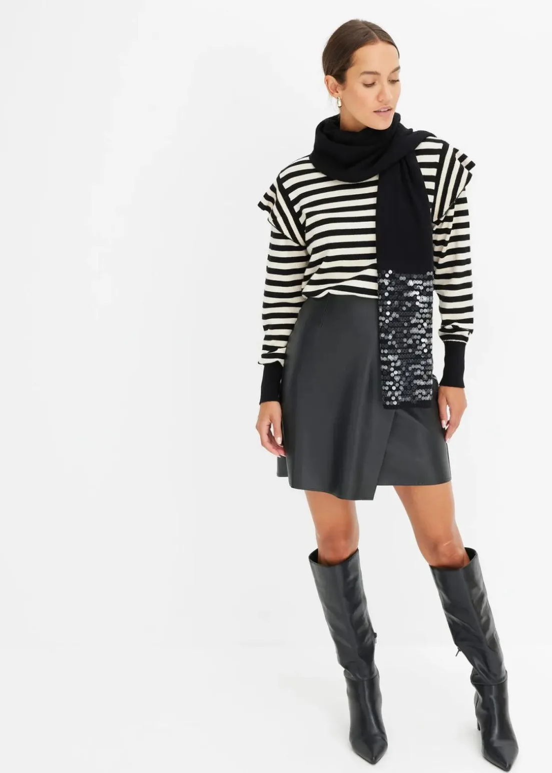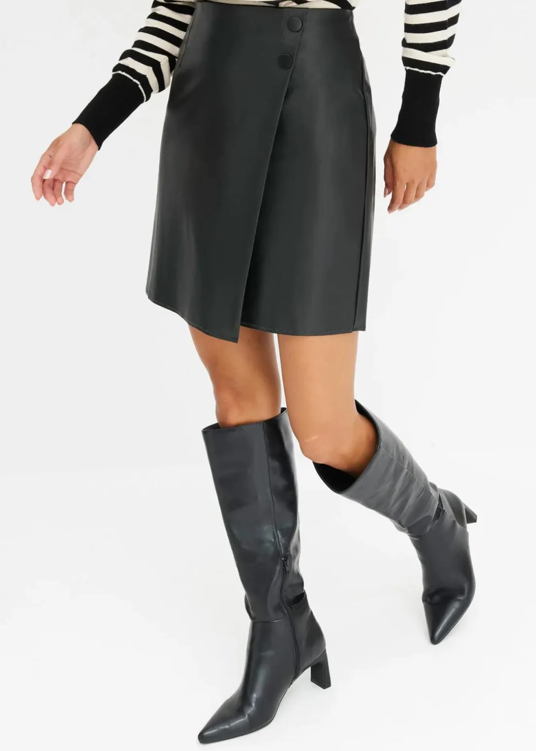 modischer Lederimitat-Rock mit Wickeloptik vorne