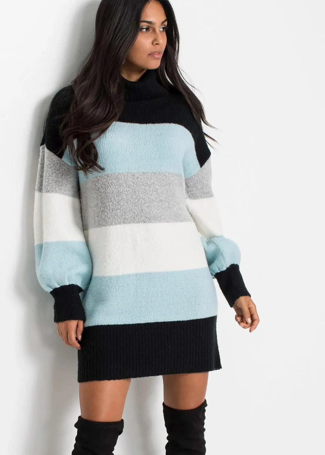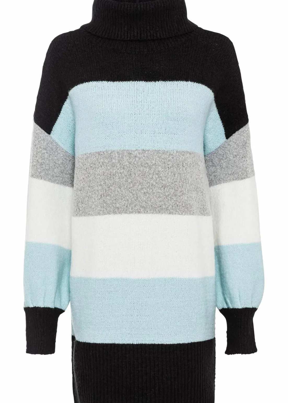 Gemütlicher Long-Pullover mit Streifen und Rollkragen