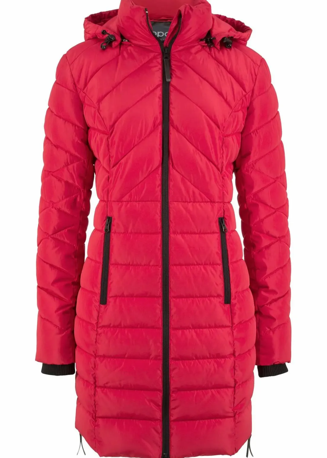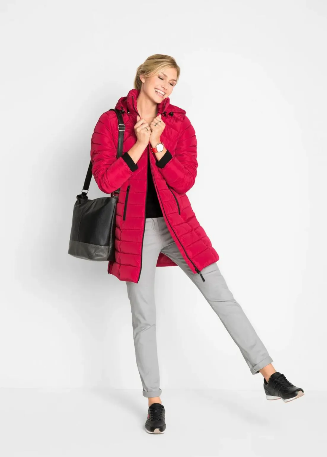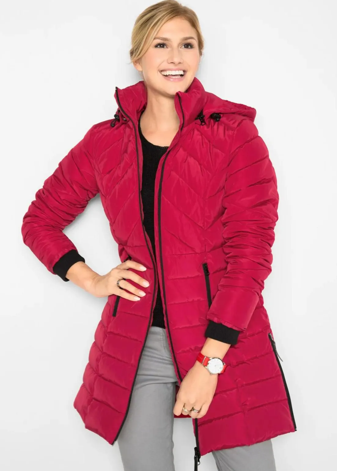 Diese Steppjacke mit kurzem Kragen überzeugt mit beidem: hohem Tragekomfort und einem legeren Aussehen. Das Modell von bpc präsentiert sich in angenehmer Länge mit einer abnehmbaren Kapuze und einem Tunnelzug. Mithilfe der seitlichen Reißverschlüsse lässt sich die Jacke an der Hüfte erweitern. Farblich abgesetzte Ärmelenden mit Rippbündchen unterstreichen das lässige Aussehen. Zu schließen ist die bequeme Long-Steppjacke mit Wattierung mit einem 2-Wege-Reißverschluss.
