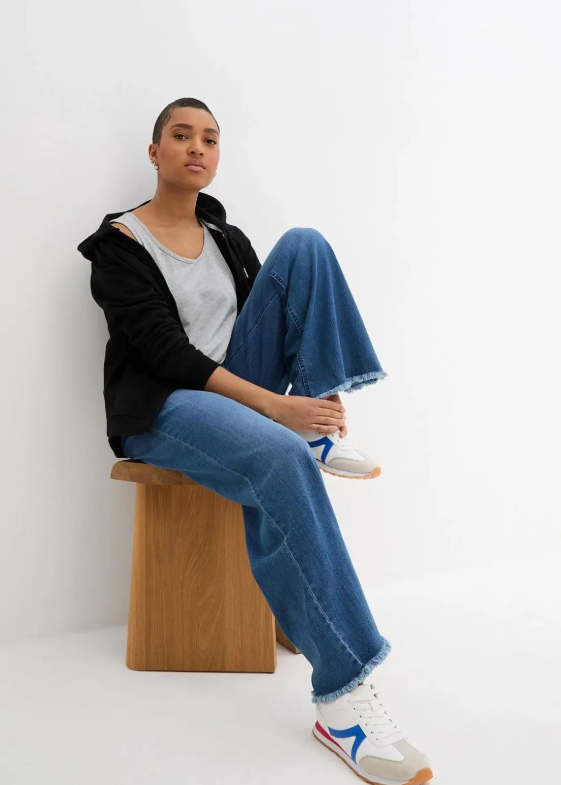 - Passform:Master (bonprix): gerade geschnitten, grau meliert: kastenförmig, hellgrau meliert: kastenförmig, schwarz: kastenförmig