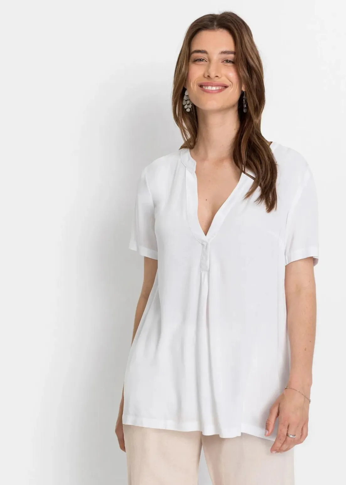 Moderne lang geschnittene Tunika mit Henleykragen