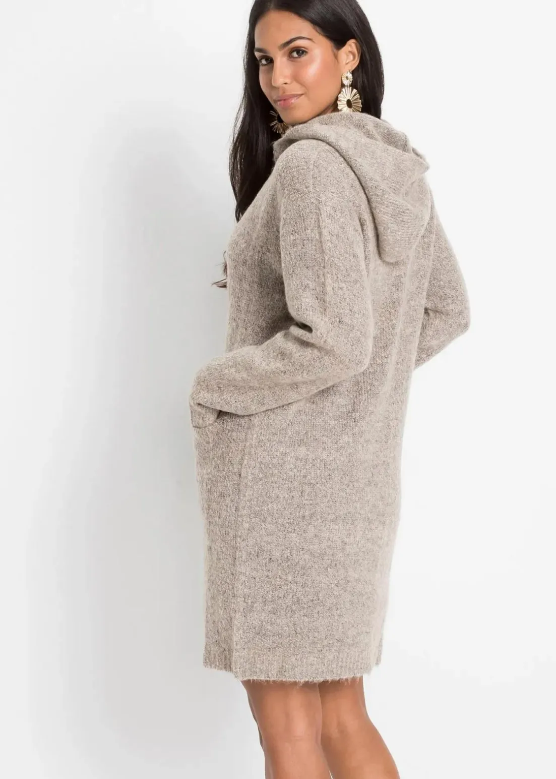 Kuschelweiche Longstrickjacke mit funktionaler Kapuze.