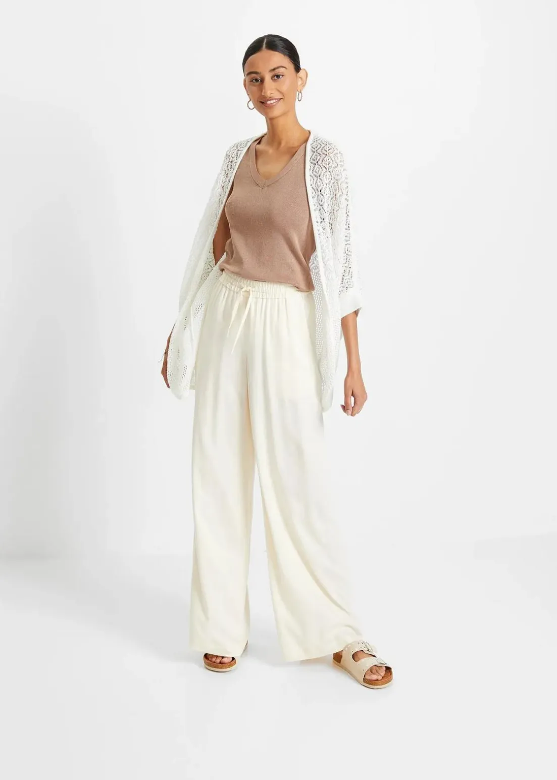 Luftig, lässige kurzarm Strickjacke mit modischem Lochmuster