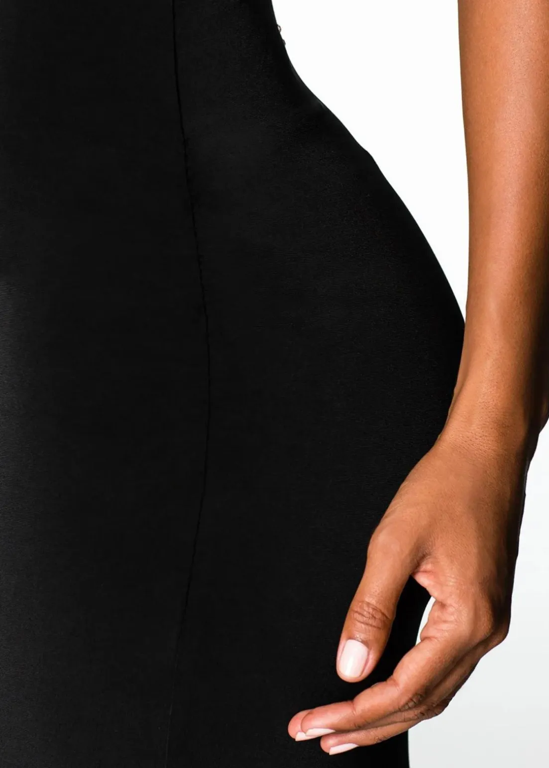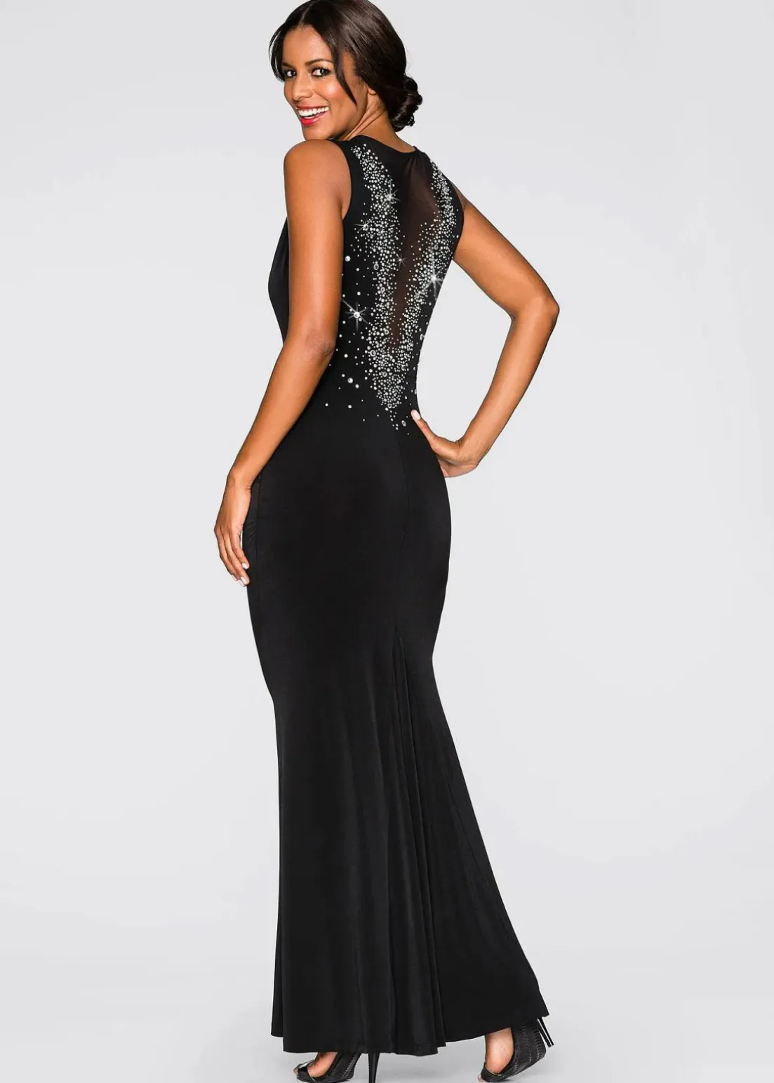 Elegant und Sexy Abendkleid aus Jersey mit einem tiefen Rückenausschnitt verziert mit Strasssteinen für den besonderen Anlass.