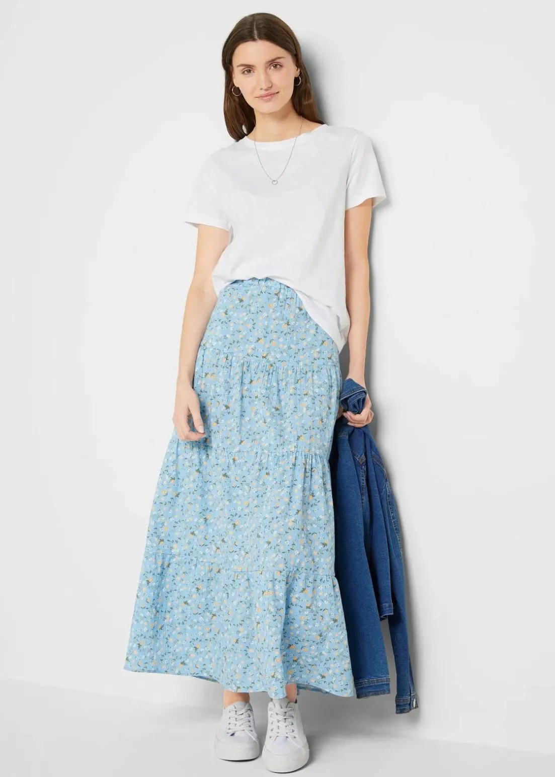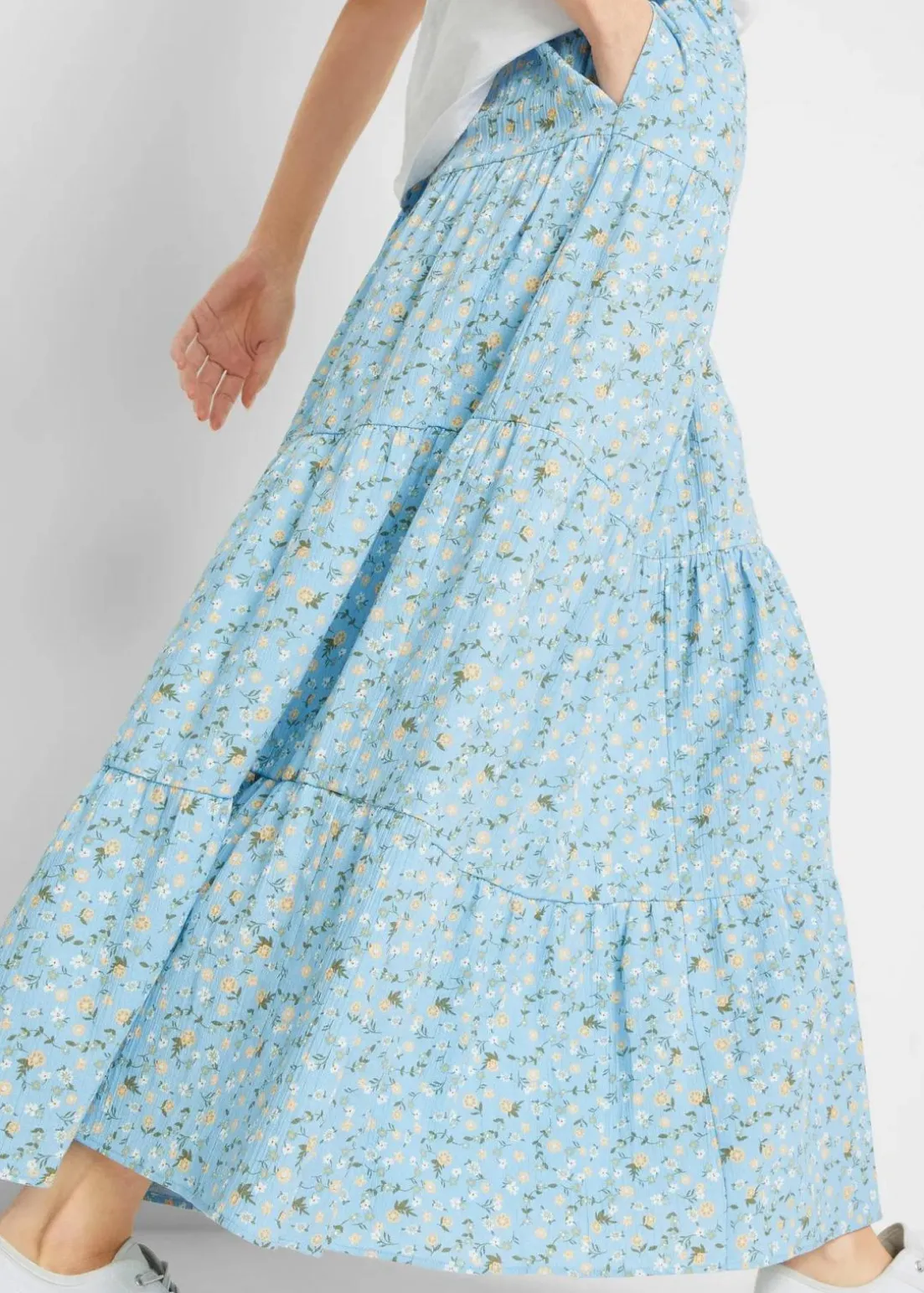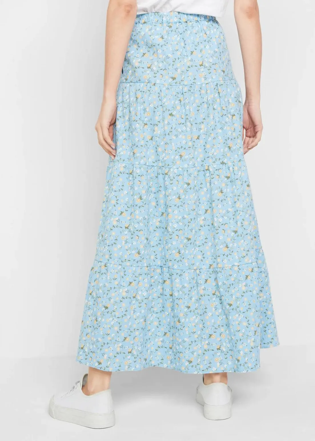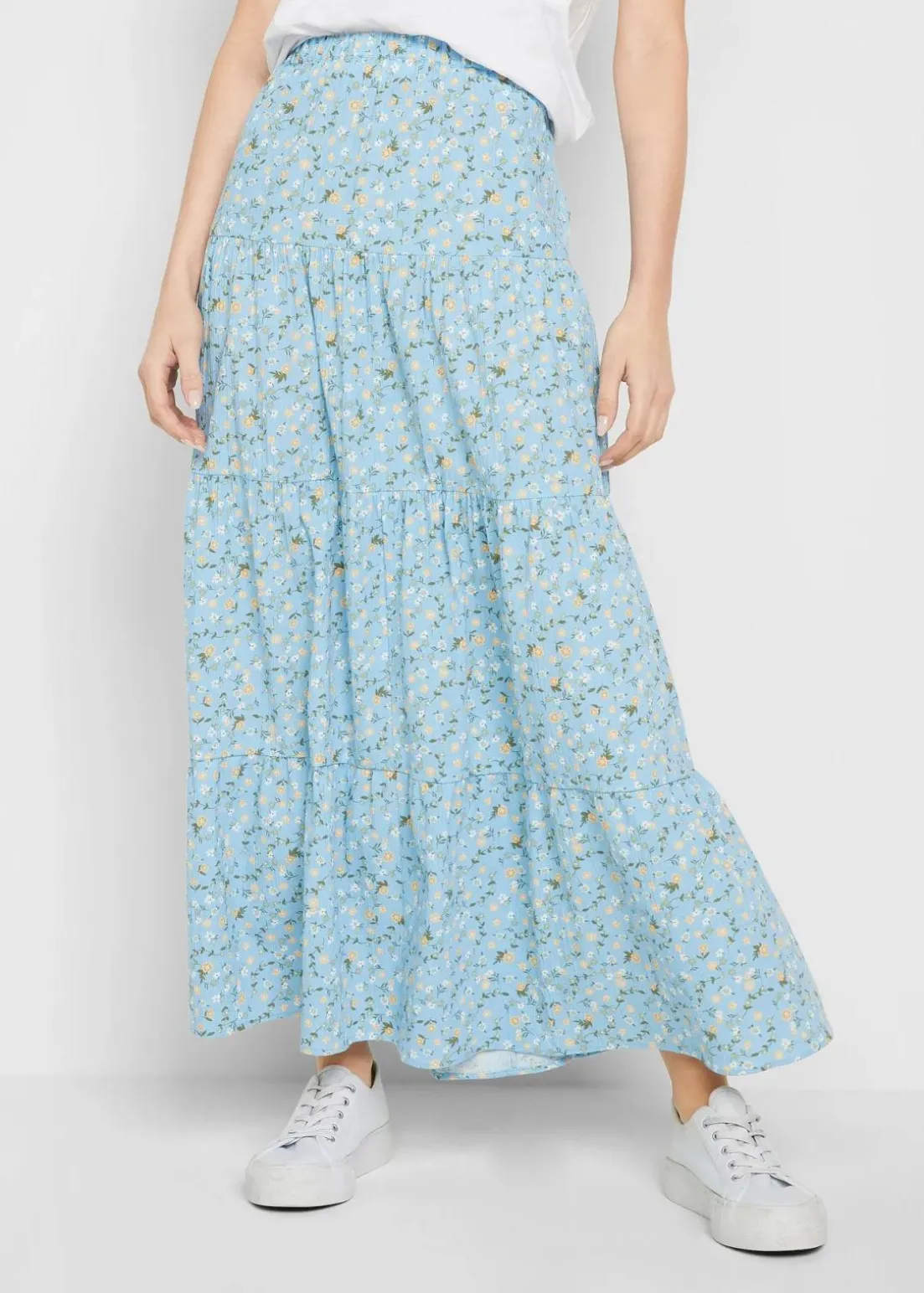 Baumwoll-Stufenrock mit Elastikbund in Maxi-Länge
