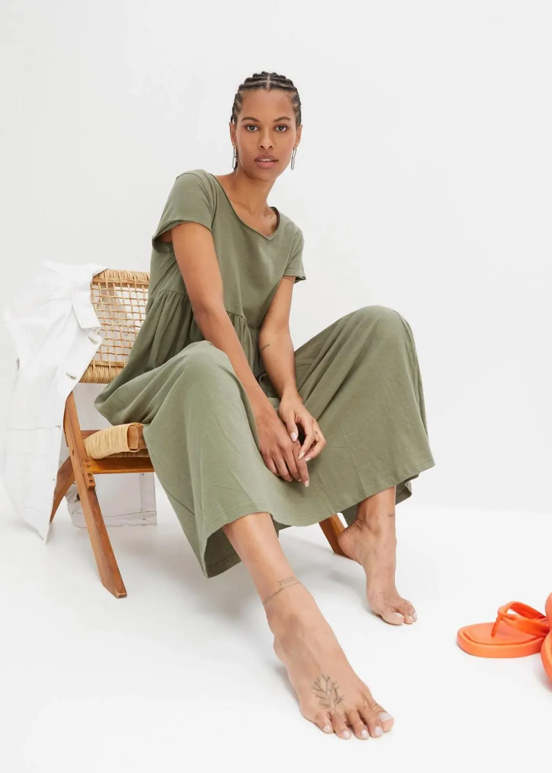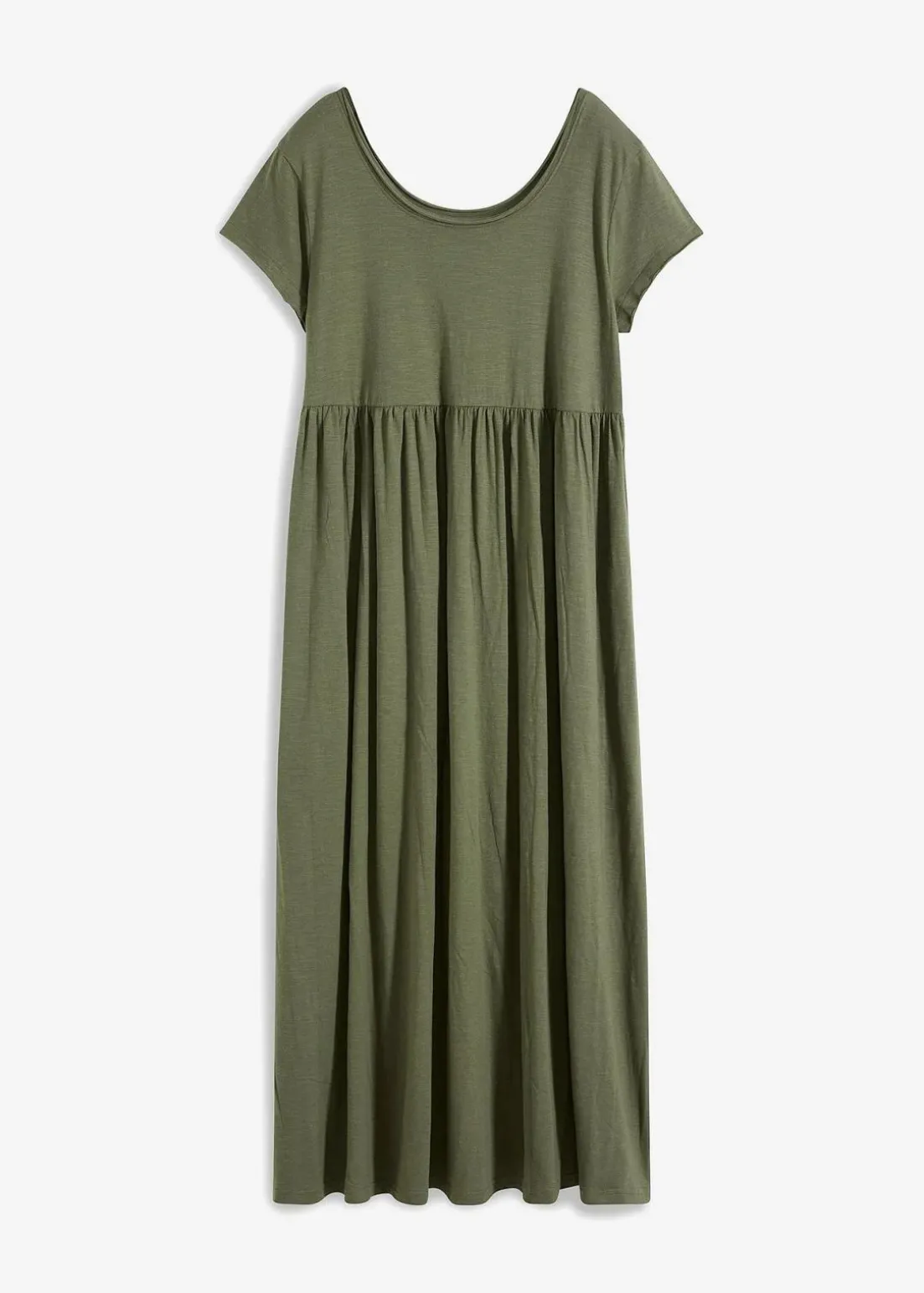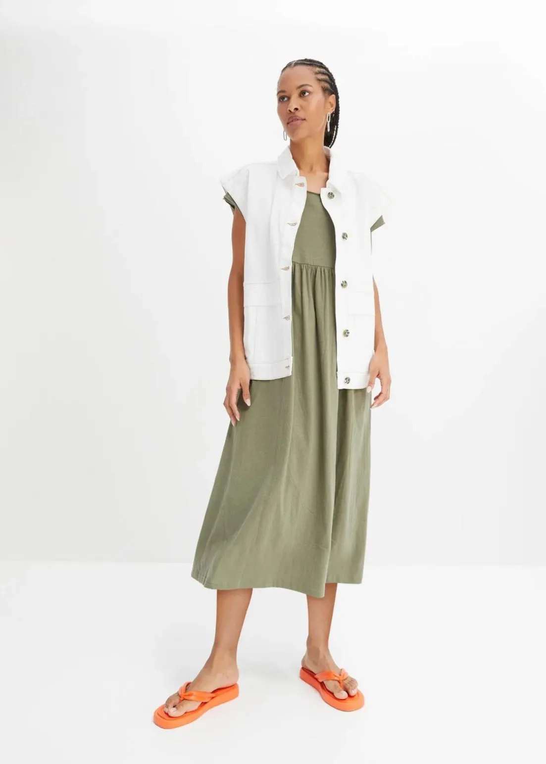 Midi Shirtkleid mit Schlitz und seitlichen Eingriffstaschen.