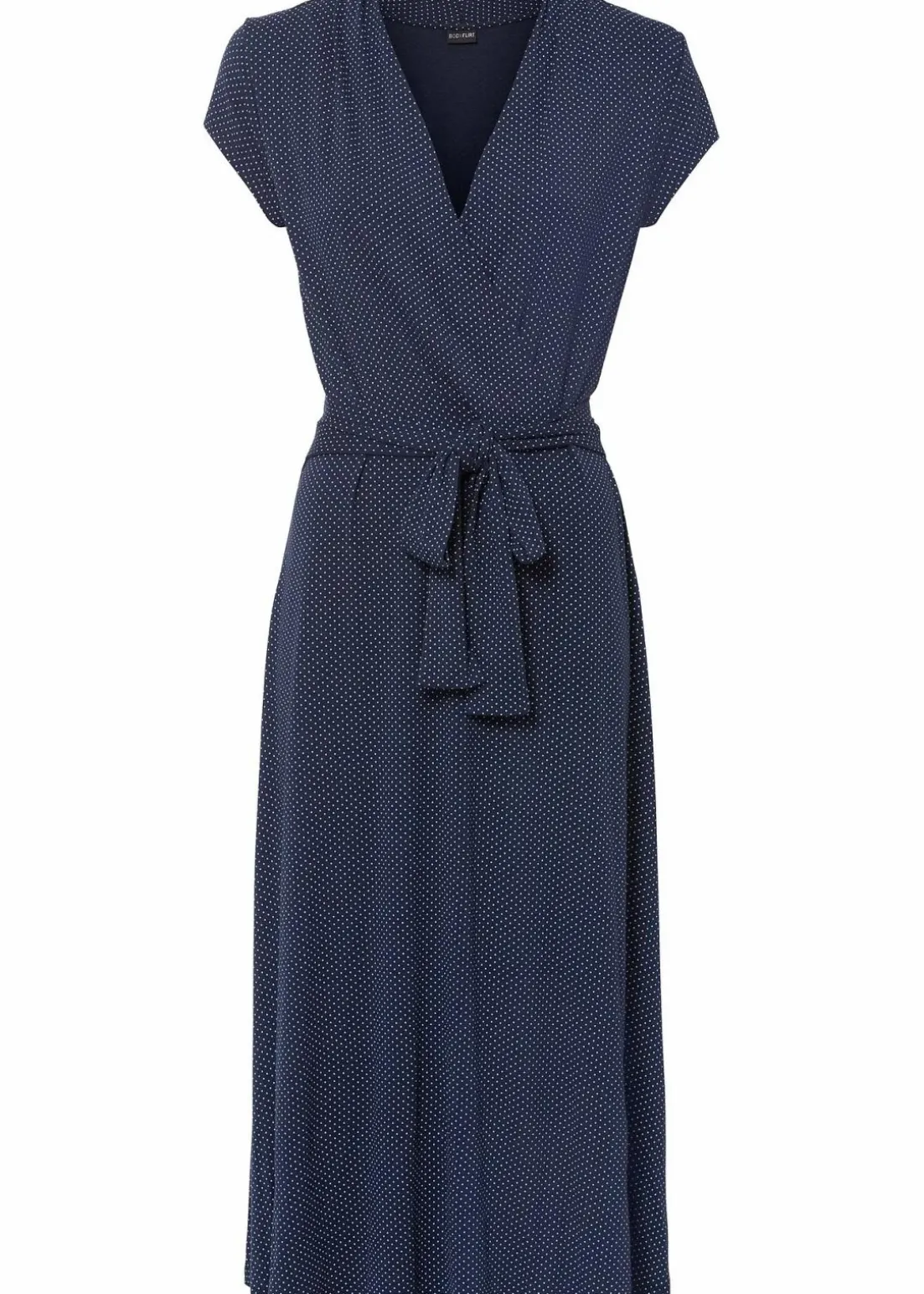 Schönes Jerseykleid mit Wickeloptik, besitzt ein Bindeband um die Taille.