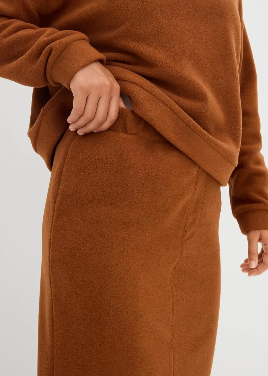 Midirock mit elastischem Bund und vorderem Beinschlitz.