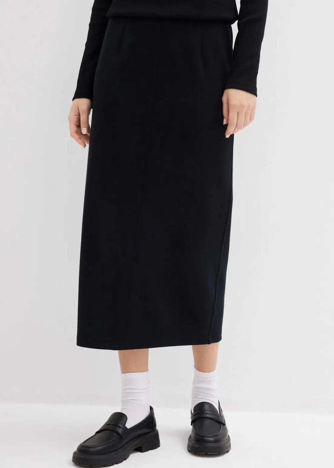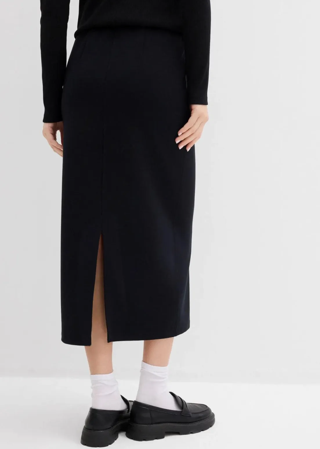 Midirock aus Scuba mit Schlitz vorne und elastischem Bund