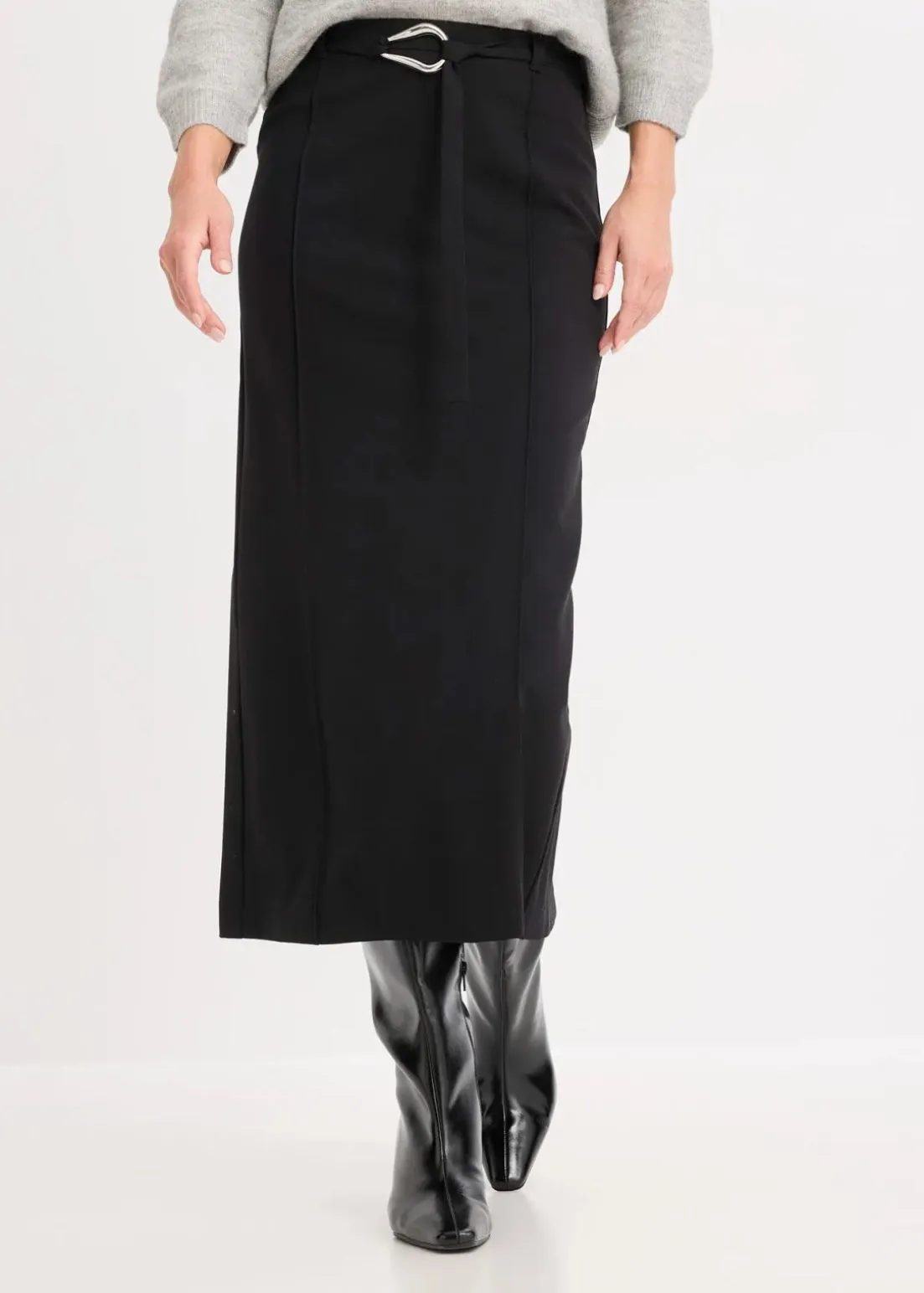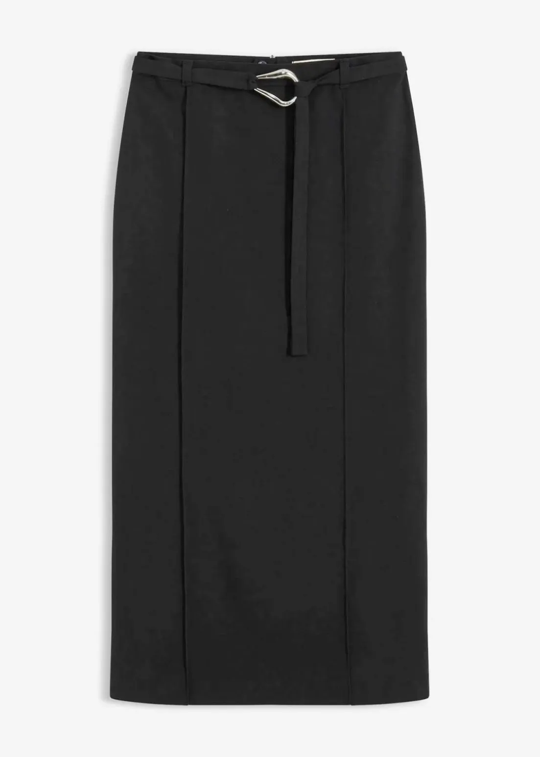 Langer schmaler Rock mit Bindegürtel und Zierschnalle