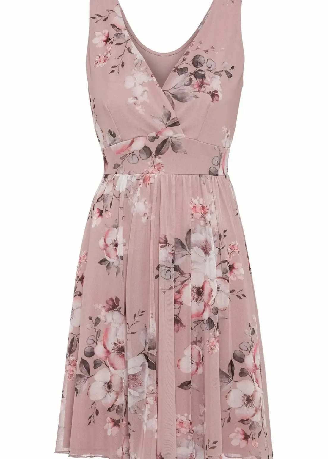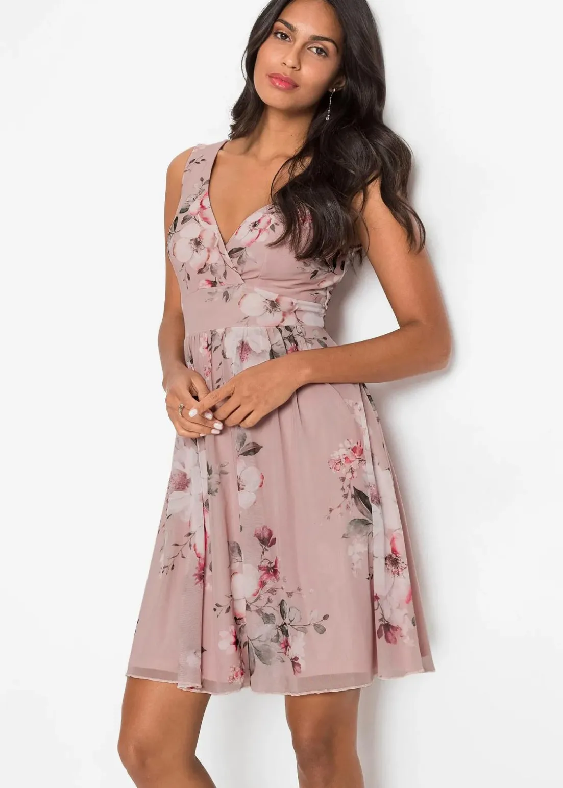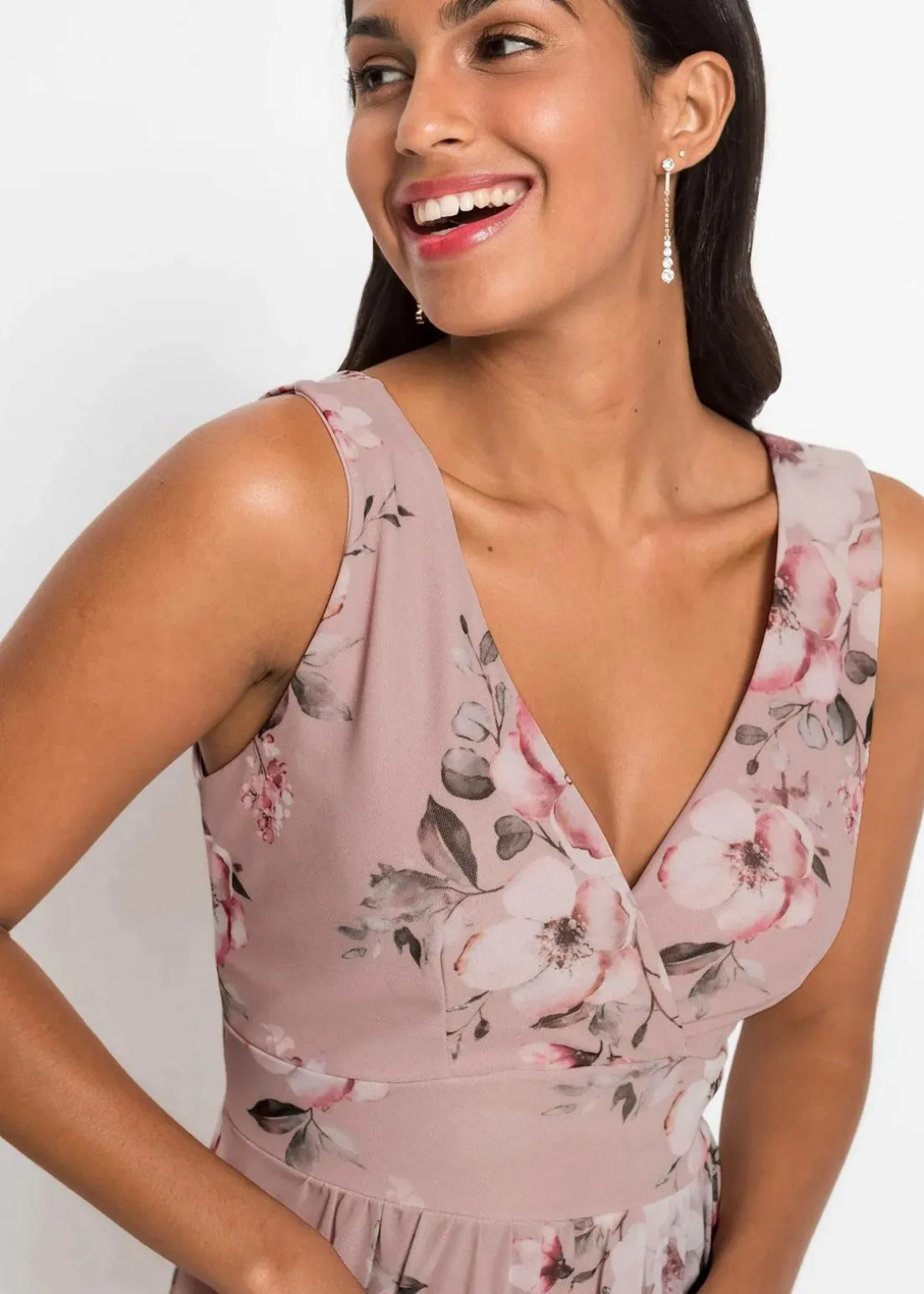 Modernes Kleid mit tiefem Ausschnitt und schönem Druck