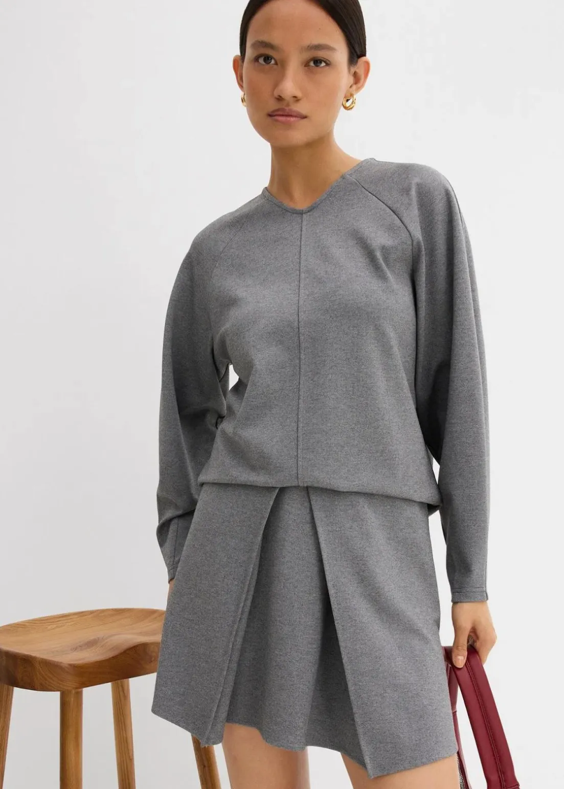 Ausgestellter Minirock mit Kellerfalte an der Vorderseite und Reißverschlussöffnung hinten