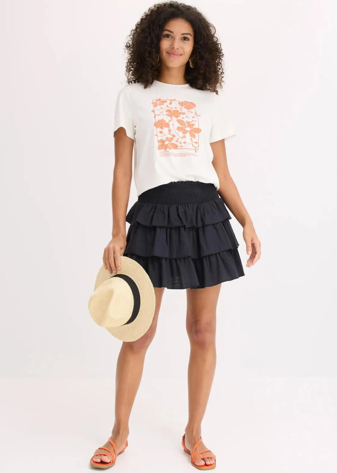 Modischer Minirock mit Smok und Volants aus reiner Baumwolle