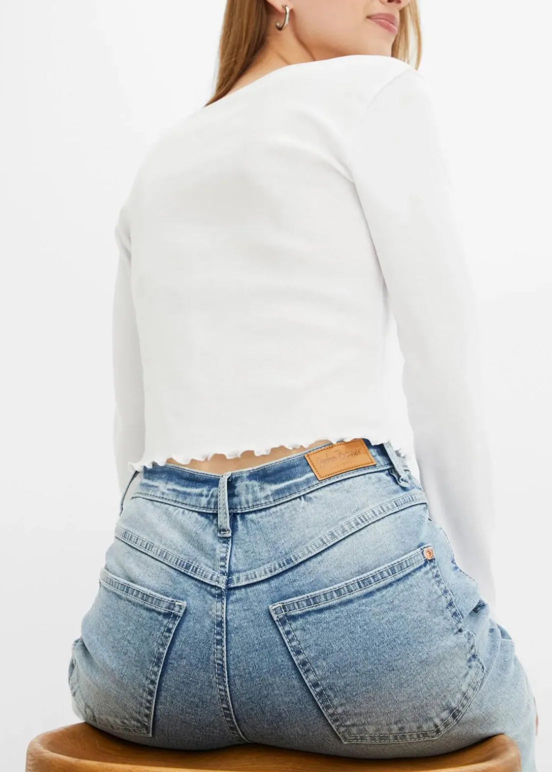 - Saumweite:enger zulaufendes Bein (Tapered Leg)