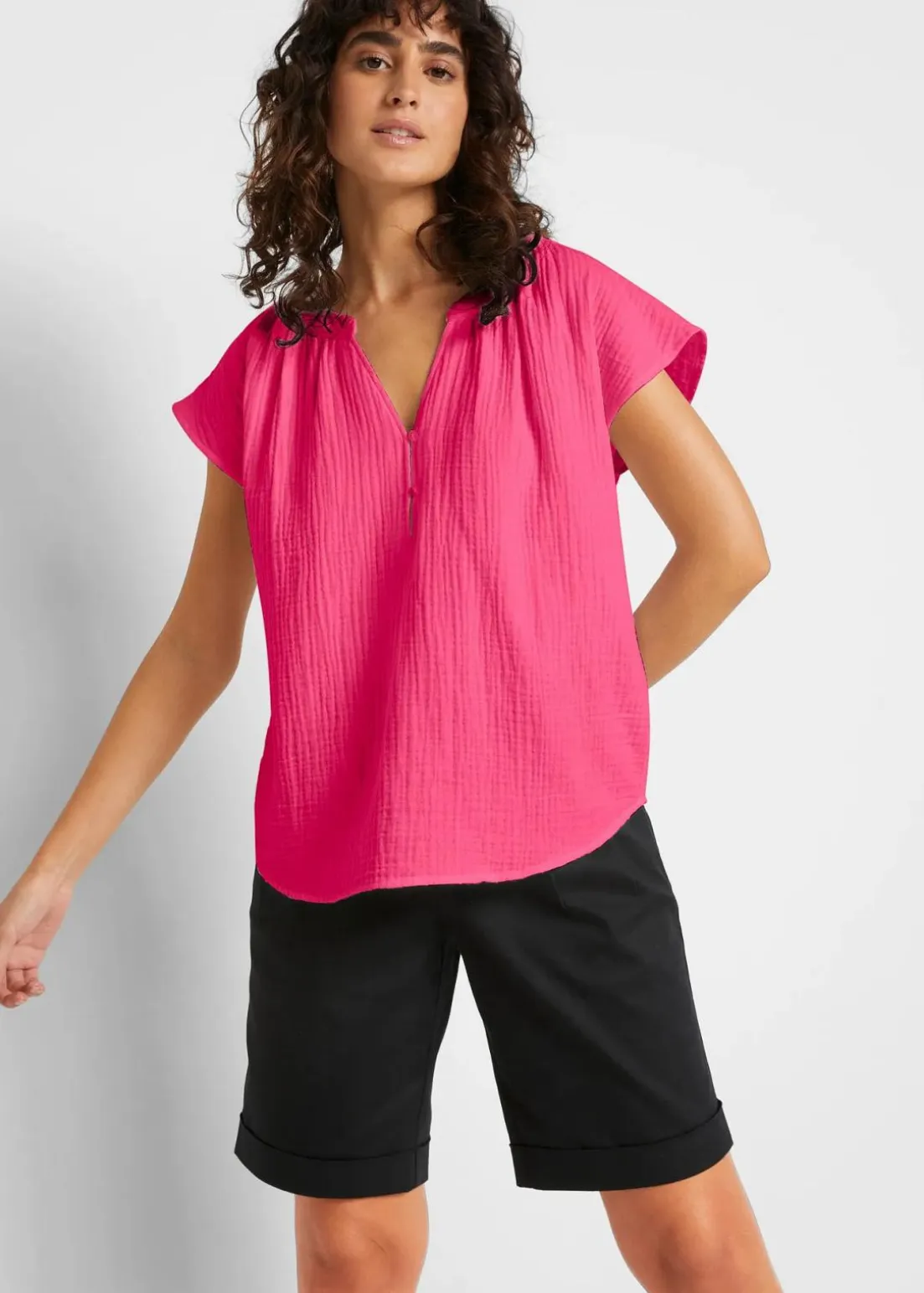 Modische Musselin-Bluse mit V-Ausschnitt und überschnittenen Schultern
